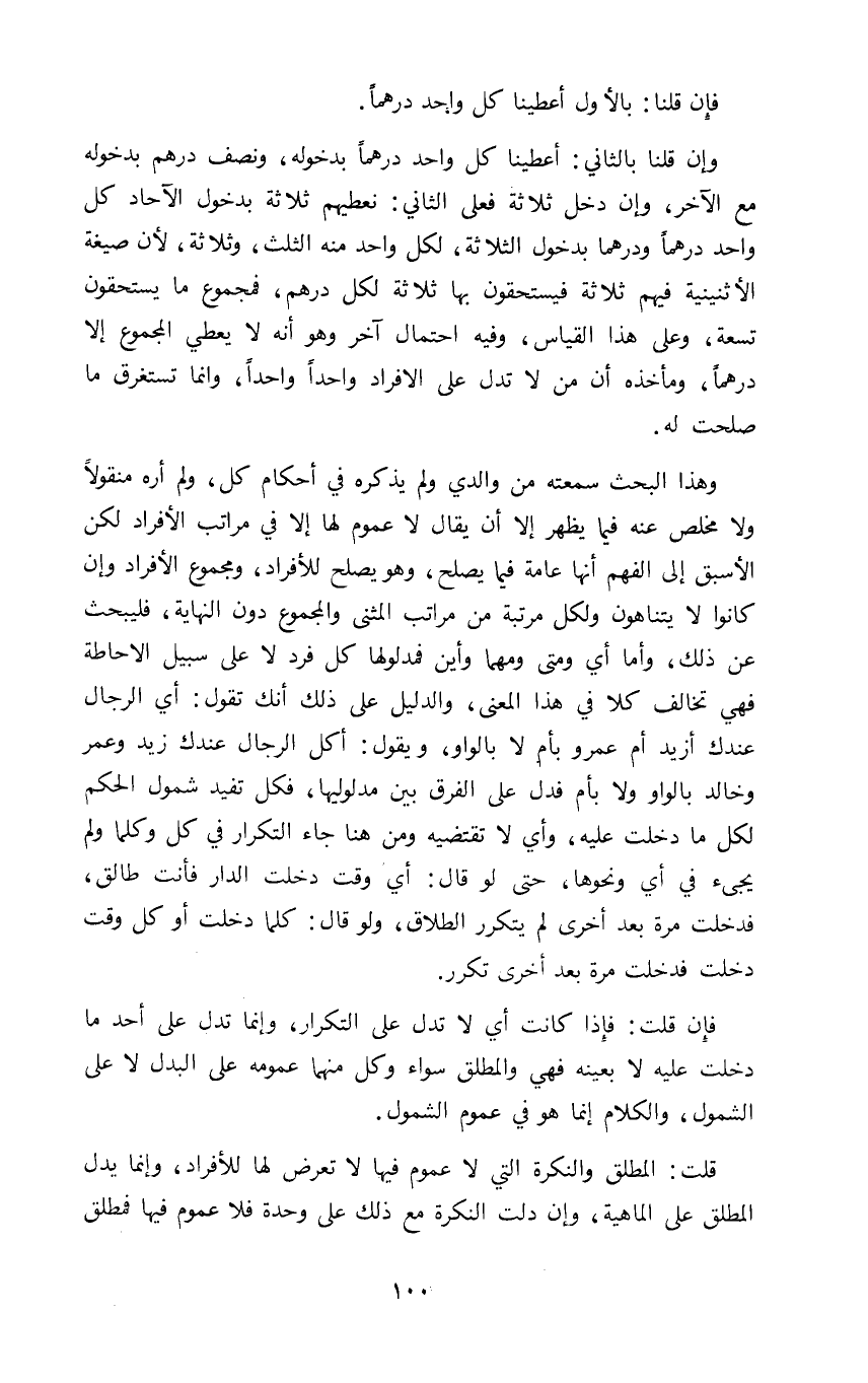 فإن قلت: فإذا كانت أي لا تدل على التكرار وانما تدل على أحد ما دخلت عليه لا بعينه فهي والمطلق سواء وكل منهما عمومه على البدل لا على الشمول والكلام إنما هو في عموم الشمول.