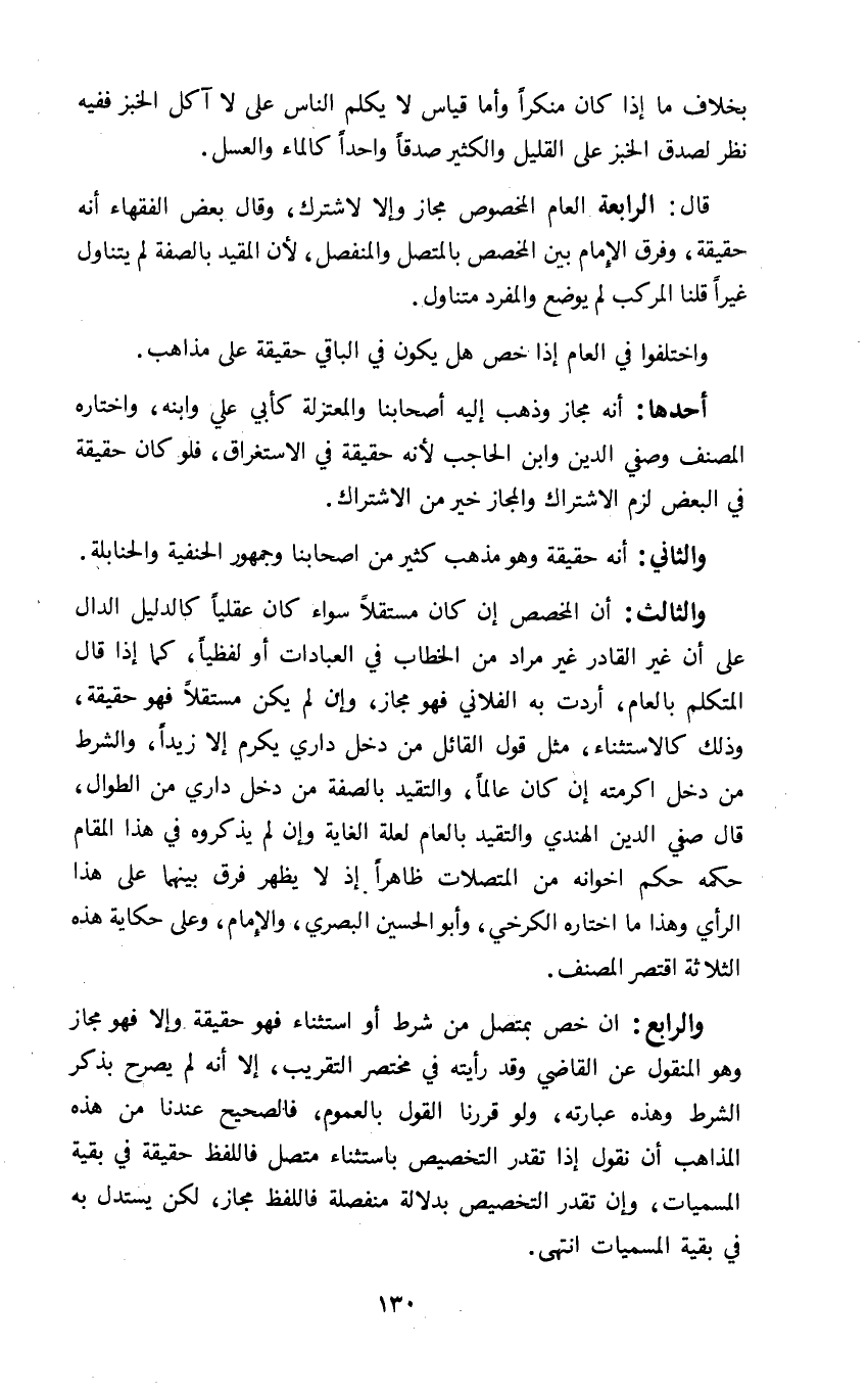 المسألة الرابعة: العام بعد التخصيص هل هو حقيقة أم مجاز؟