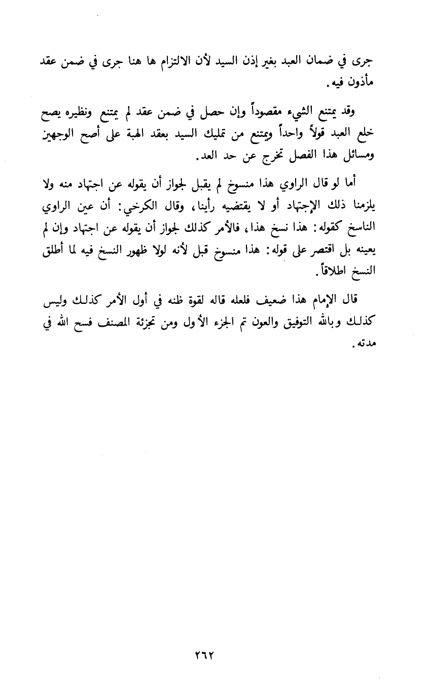 قال الإمام هذا ضعيف فلعله قاله لقوة ظنه في أول الامر كذلك وليس كذلك وبالله التوفيق والعون تم الجزء الأول ومن تجزئة المصنف فسح الله في مدته.