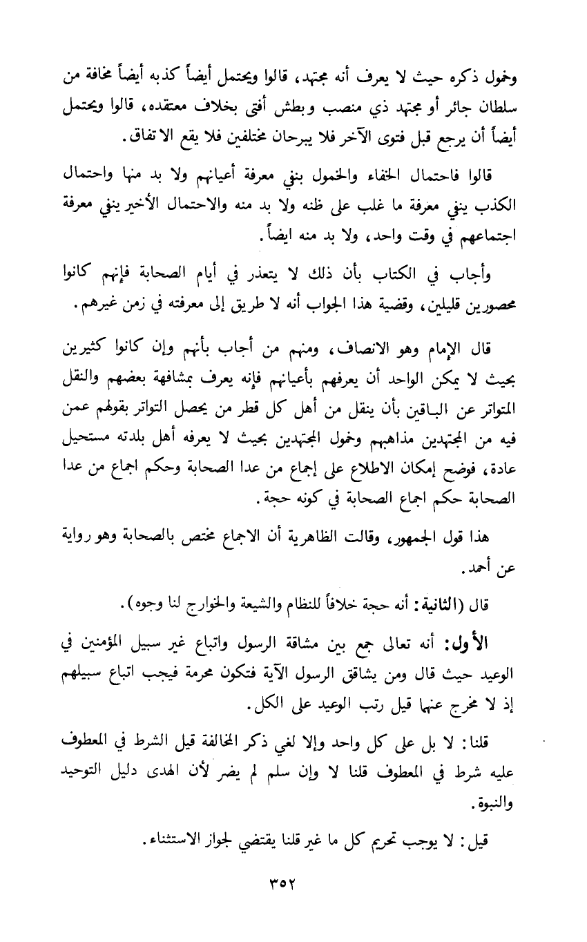 قال الثانية: أنه حجة خلافا للنظام والشيعة والخوارج لنا وجوه.