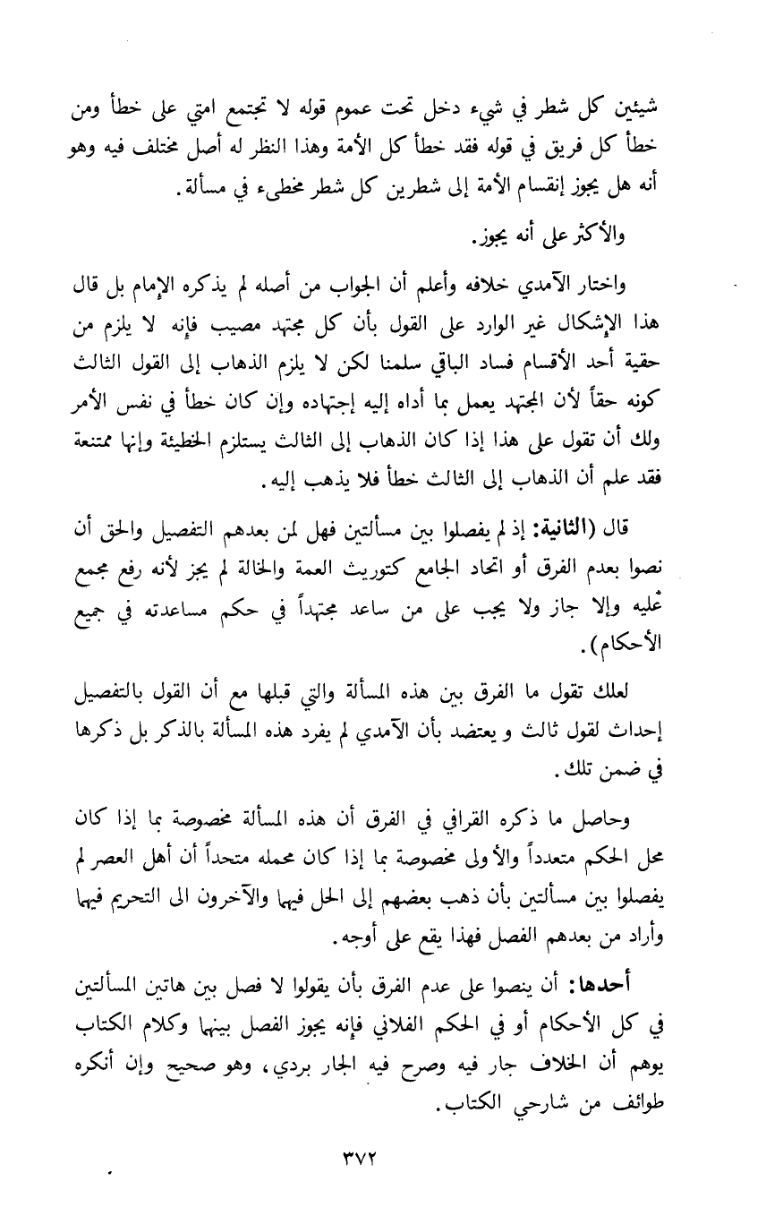 لعلك تقول ما الفرق بين هذه المسألة والتي قبلها مع أن القول بالتفصيل إحداث لقول ثالث ويعتضد بأن الآمدي لم يفرد هذه المسألة بالذكر بل ذكرها في ضمن تلك.