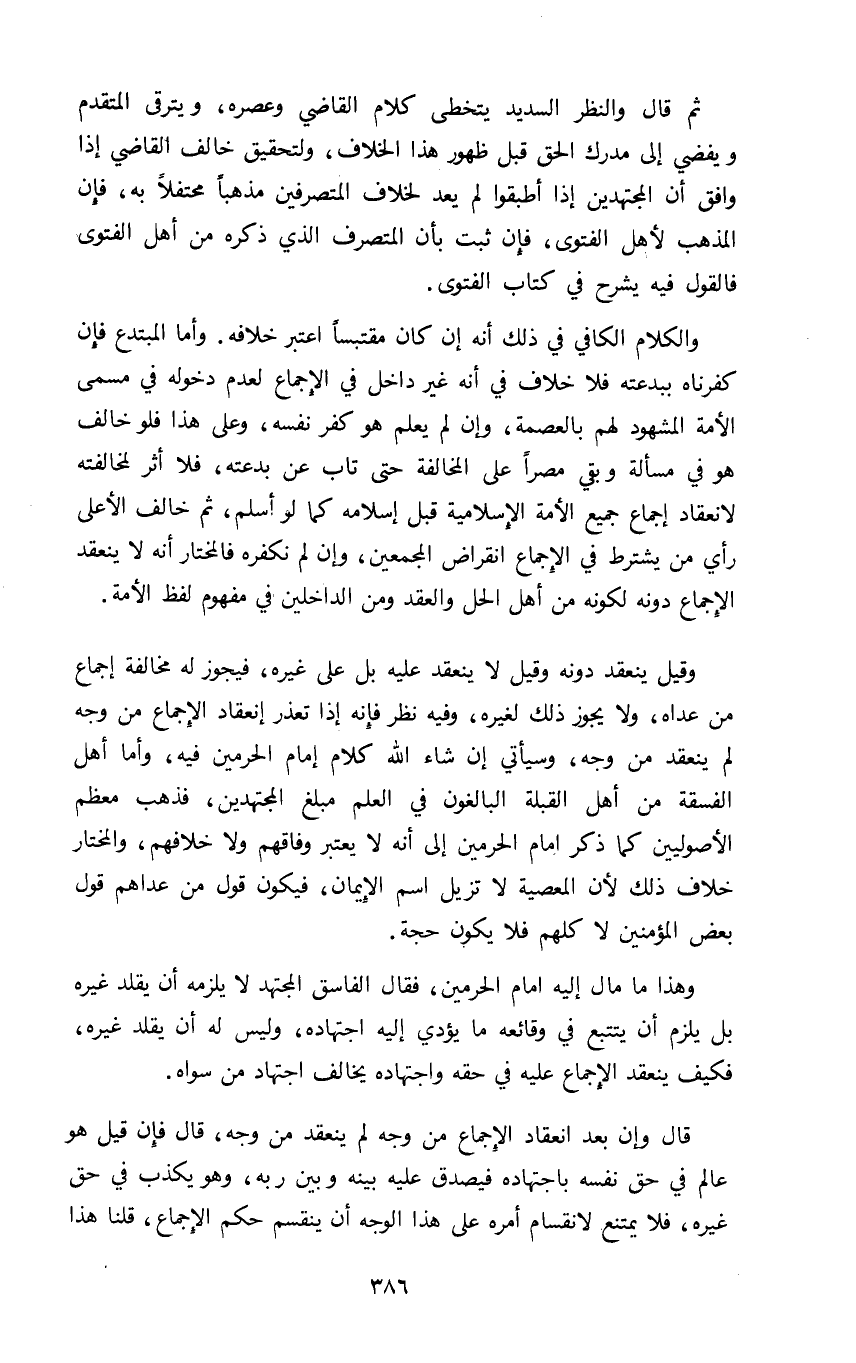 ثم قال والنظر السديد يتخطى كلام القاضي وعصره ويترقى المتقدم ويفضي إلى مدرك الحق قبل ظهور هذا الخلاف ولتحقيق خالف القاضي إذا وافق أن المجتهدين إذا أطبقوا لم لخلاف يعد المتصرفين مذهبا محتفلا به فإن المذهب لأهل الفتوى فإن ثبت بأن المتصرف الذي ذكره من أهل الفتوى فالقول فيه يشرح في كتاب الفتوى.