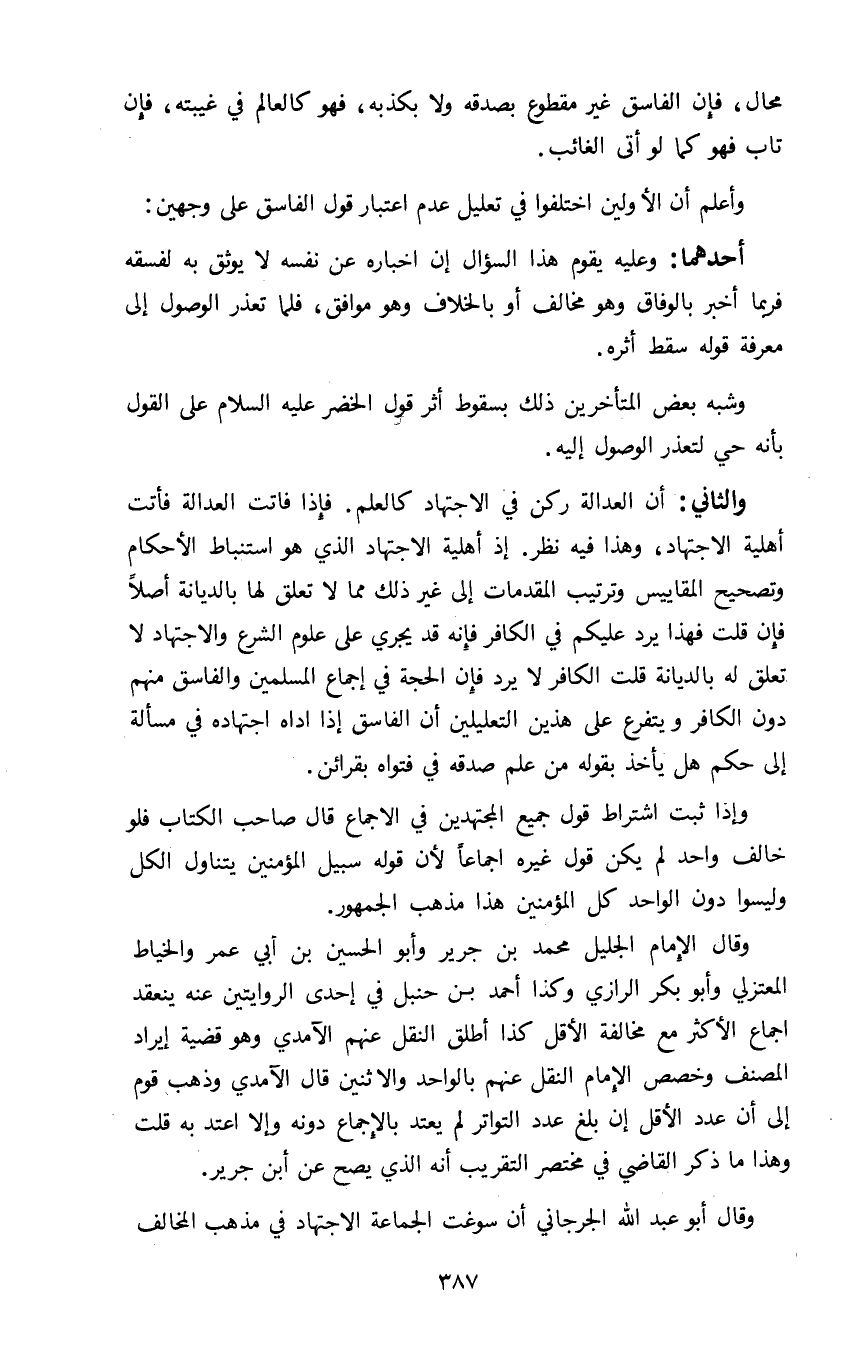 وأعلم أن الأولين اختلفوا في تعليل عدم اعتبار قول الفاسق على وجهين: