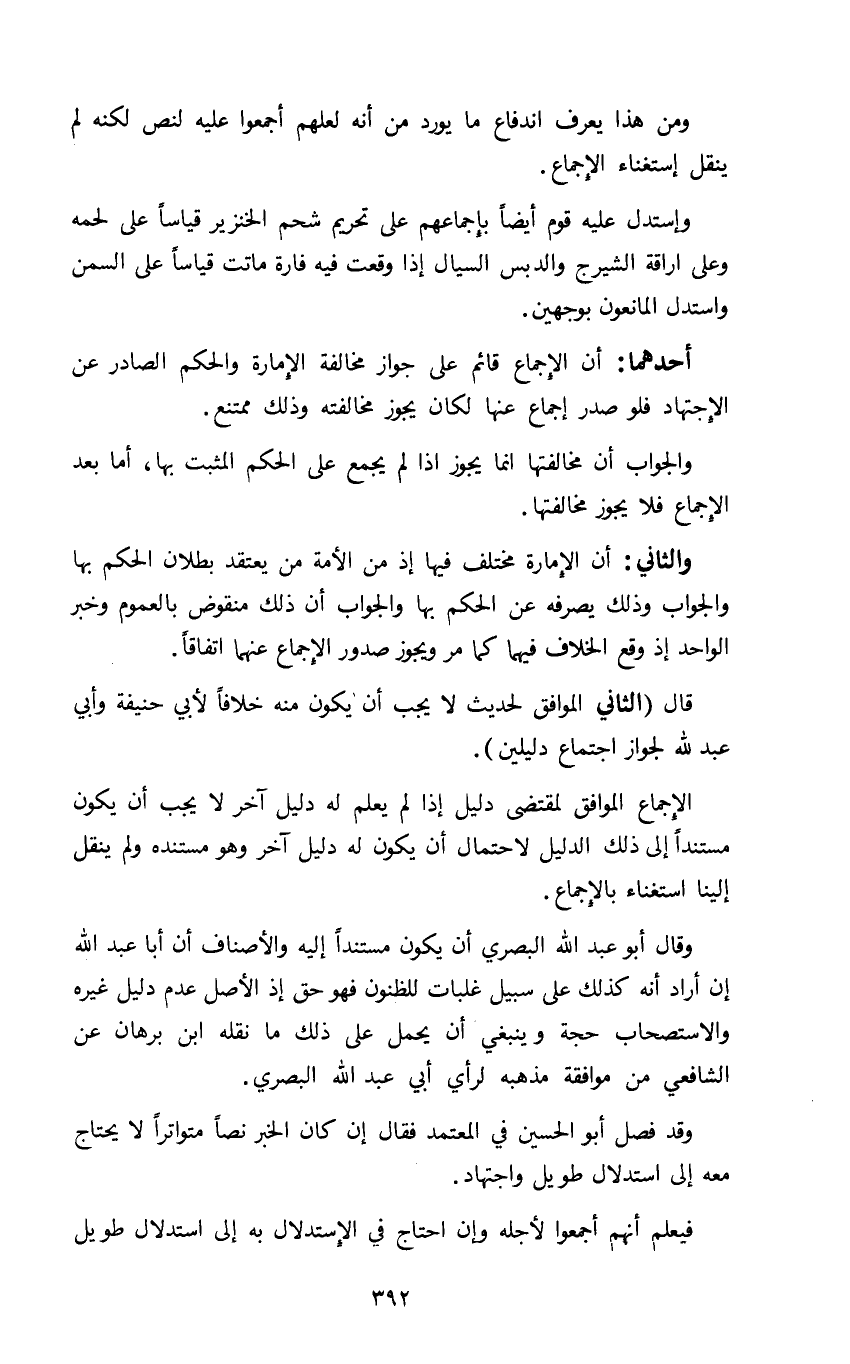 أحدهما: أن الإجماع قائم على جواز مخالفة الإمارة والحكم الصادر عن الإجتهاد فلو صدر إجماع عنها لكان يجوز مخالفته وذلك ممتنع.