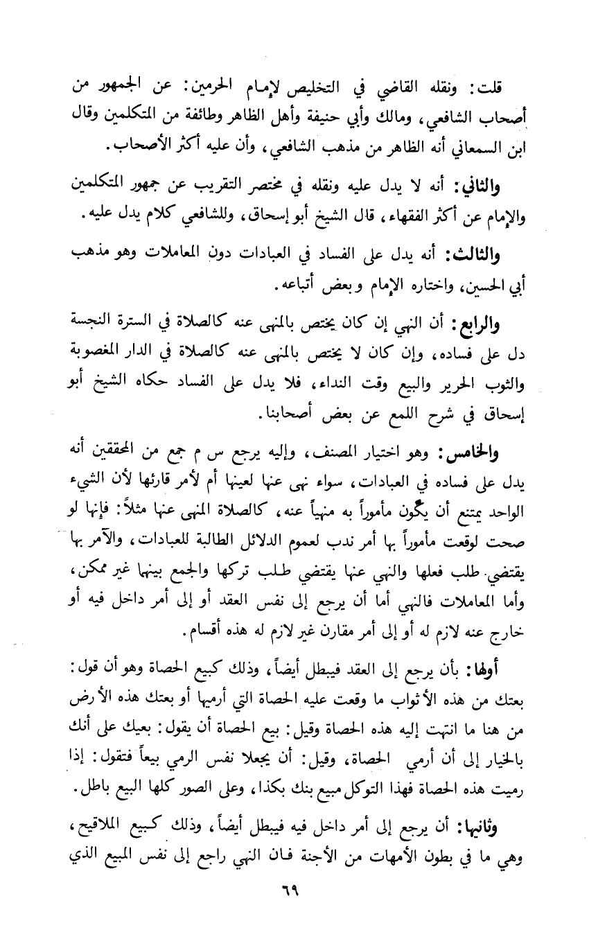 والثالث: أنه يدل على الفساد في العبادات دون المعاملات وهو مذهب أبي الحسين واختاره الإمام وبعض اتباعه.
