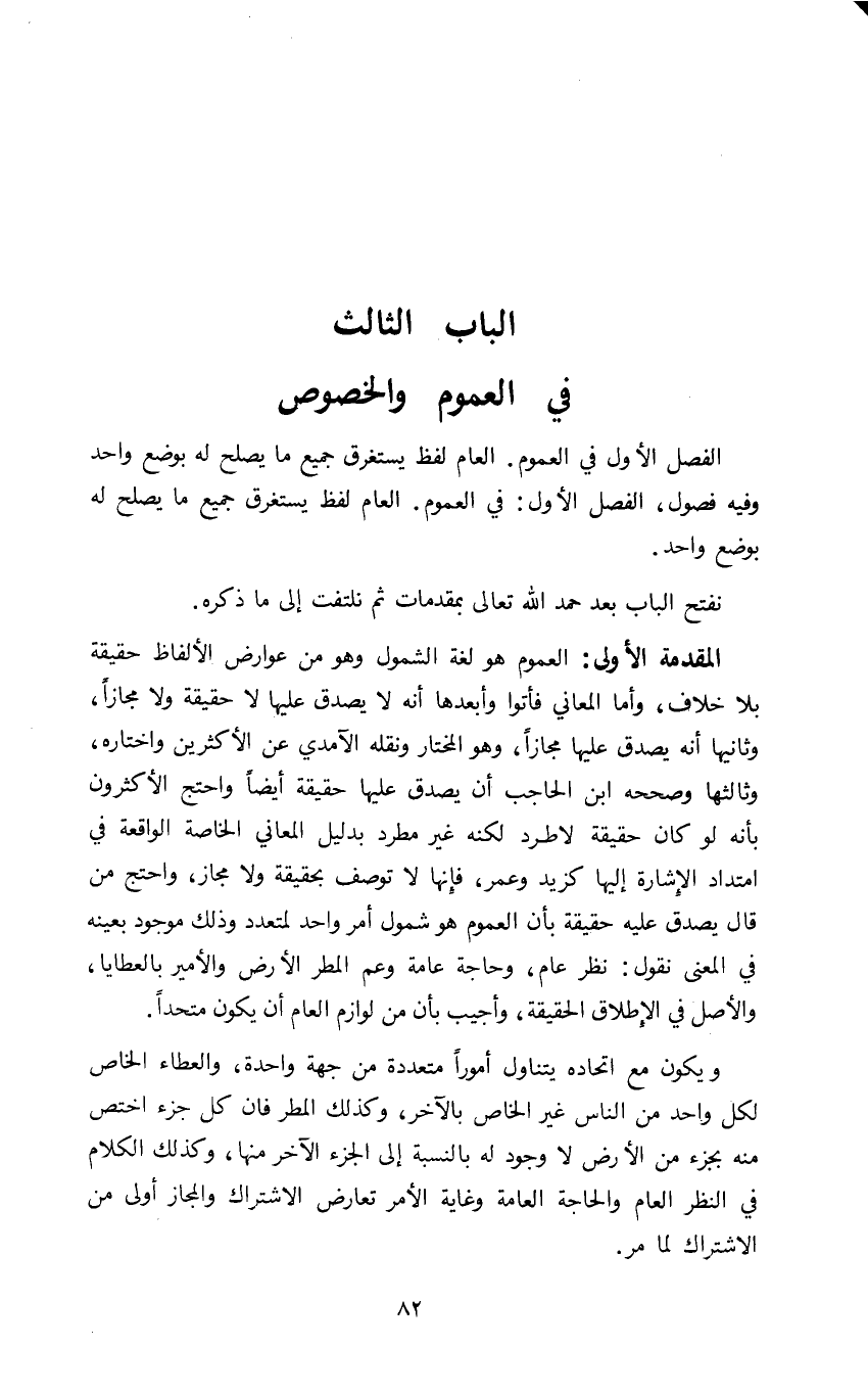الباب الثالث: في العموم الخصوص
