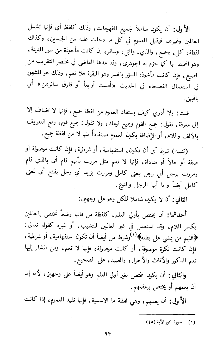 الذي يفيد العموم إما أن يفيده من جهة اللغة أو العرف أو العقل.