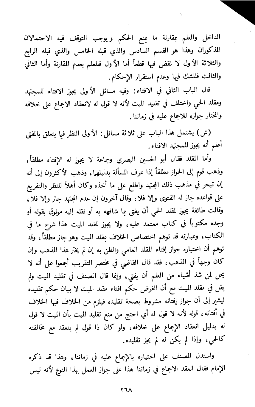 قال الباب الثاني في الإفتاء وفيه مسائل الأولى يجوز الإفتاء للمجتهد