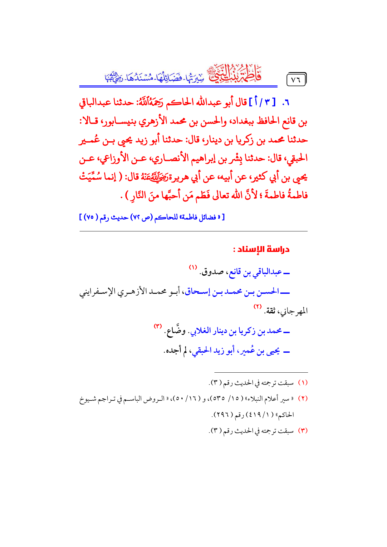 [«فضائل فاطمة» للحاكم (ص ٧٢) حديث رقم (٧٥)]