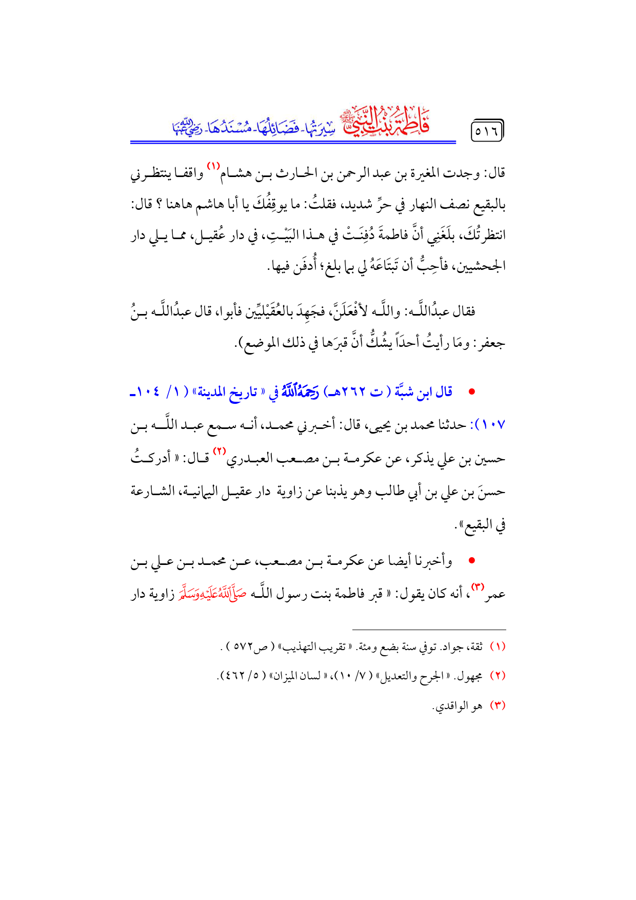 كتاب فاطمة بنت النبي - صلى الله عليه وسلم - سيرتها، فضائلها، مسندها - رضي الله عنها - (اسم الجزء: 3)