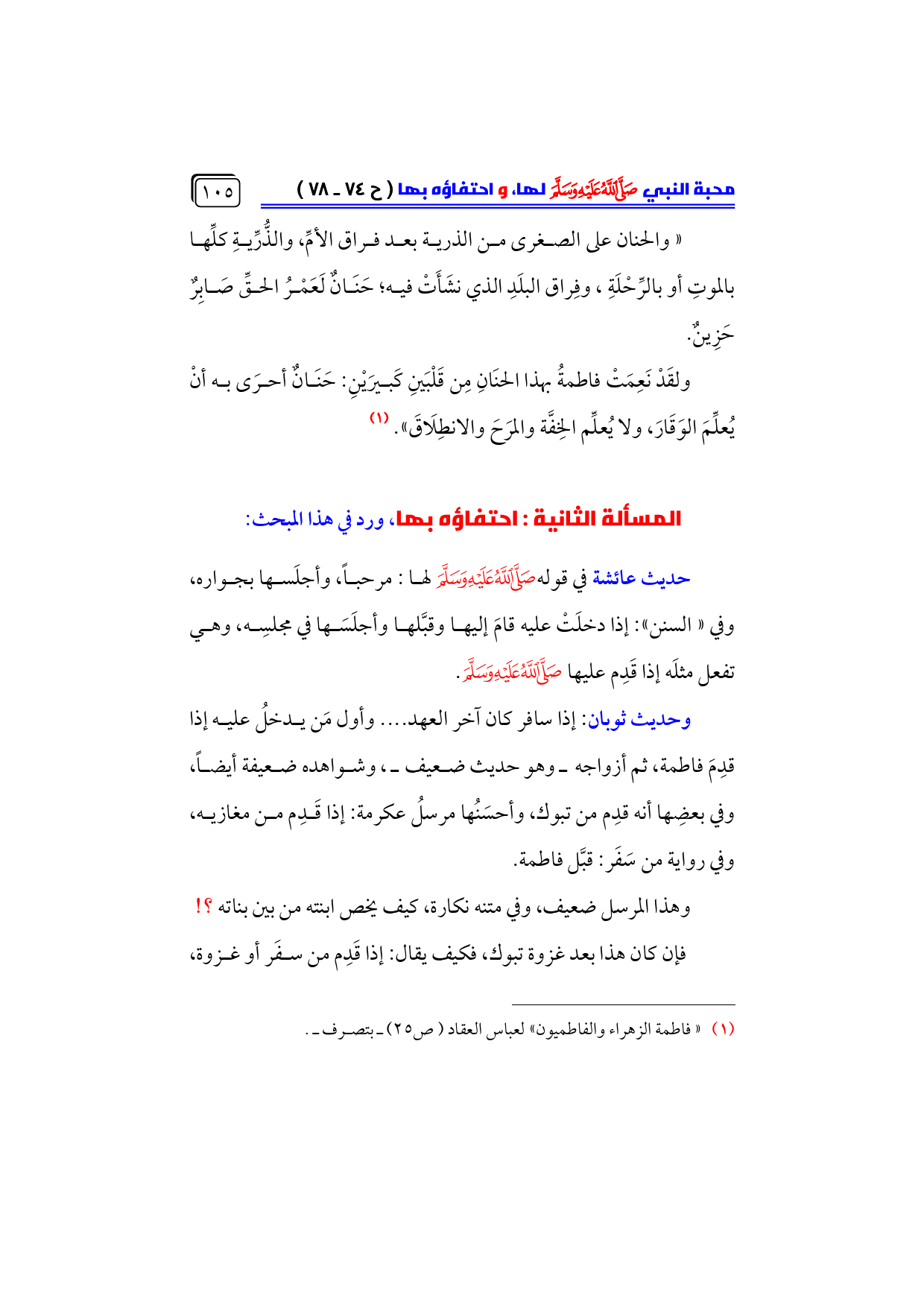 (¬١) «فاطمة الزهراء والفاطميون» لعباس العقاد (ص ٢٥) ـ بتصرف ـ.
