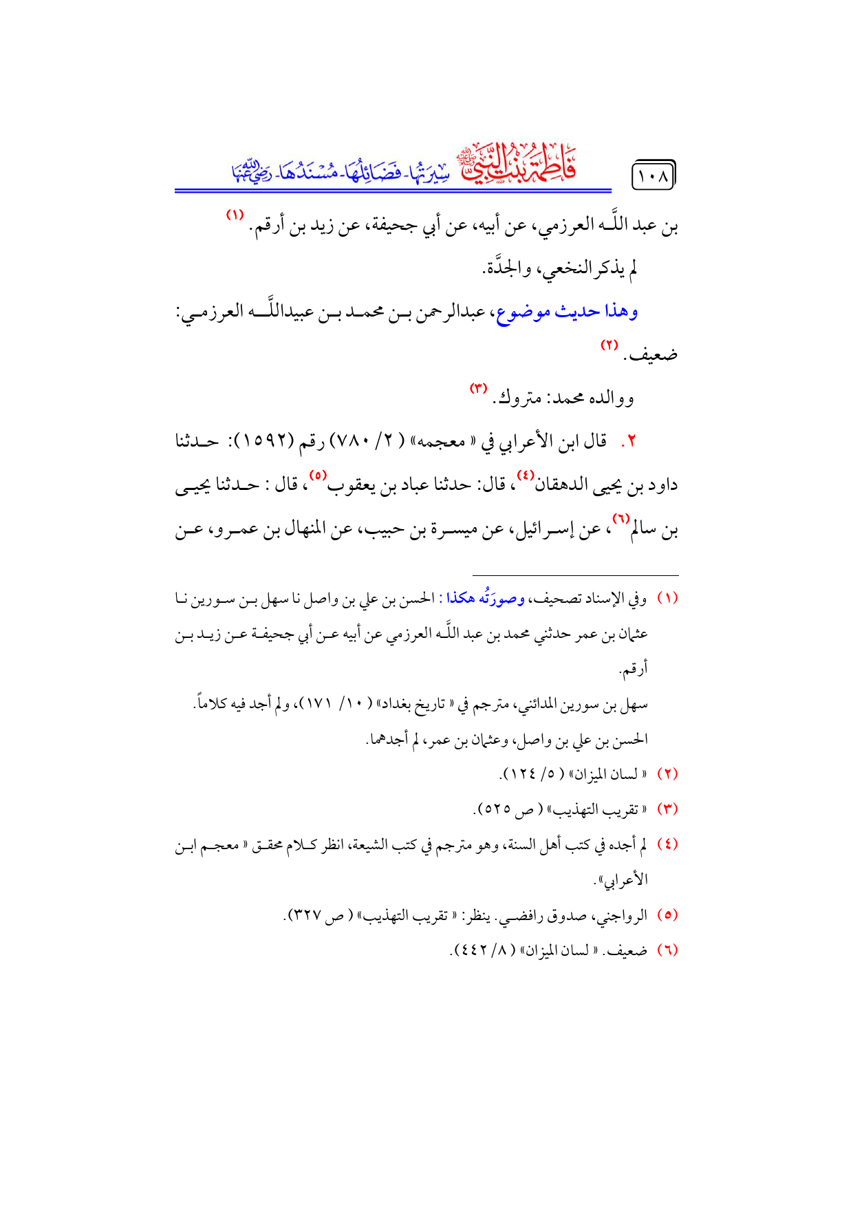 (¬١) وفي الإسناد تصحيف، وصورَتُه هكذا: الحسن بن علي بن واصل نا سهل بن سورين نا عثمان بن عمر حدثني محمد بن عبد اللَّه العرزمي عن أبيه عن أبي جحيفة عن زيد بن أرقم.