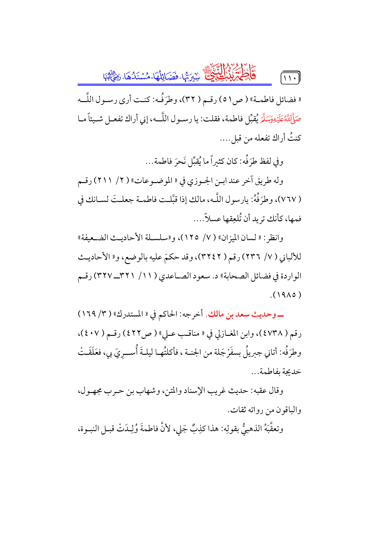 كتاب فاطمة بنت النبي - صلى الله عليه وسلم - سيرتها، فضائلها، مسندها - رضي الله عنها - (اسم الجزء: 4)