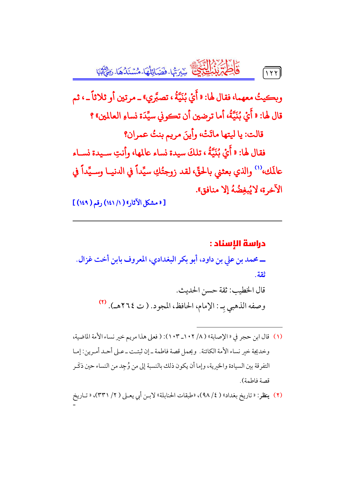 كتاب فاطمة بنت النبي - صلى الله عليه وسلم - سيرتها، فضائلها، مسندها - رضي الله عنها - (اسم الجزء: 4)