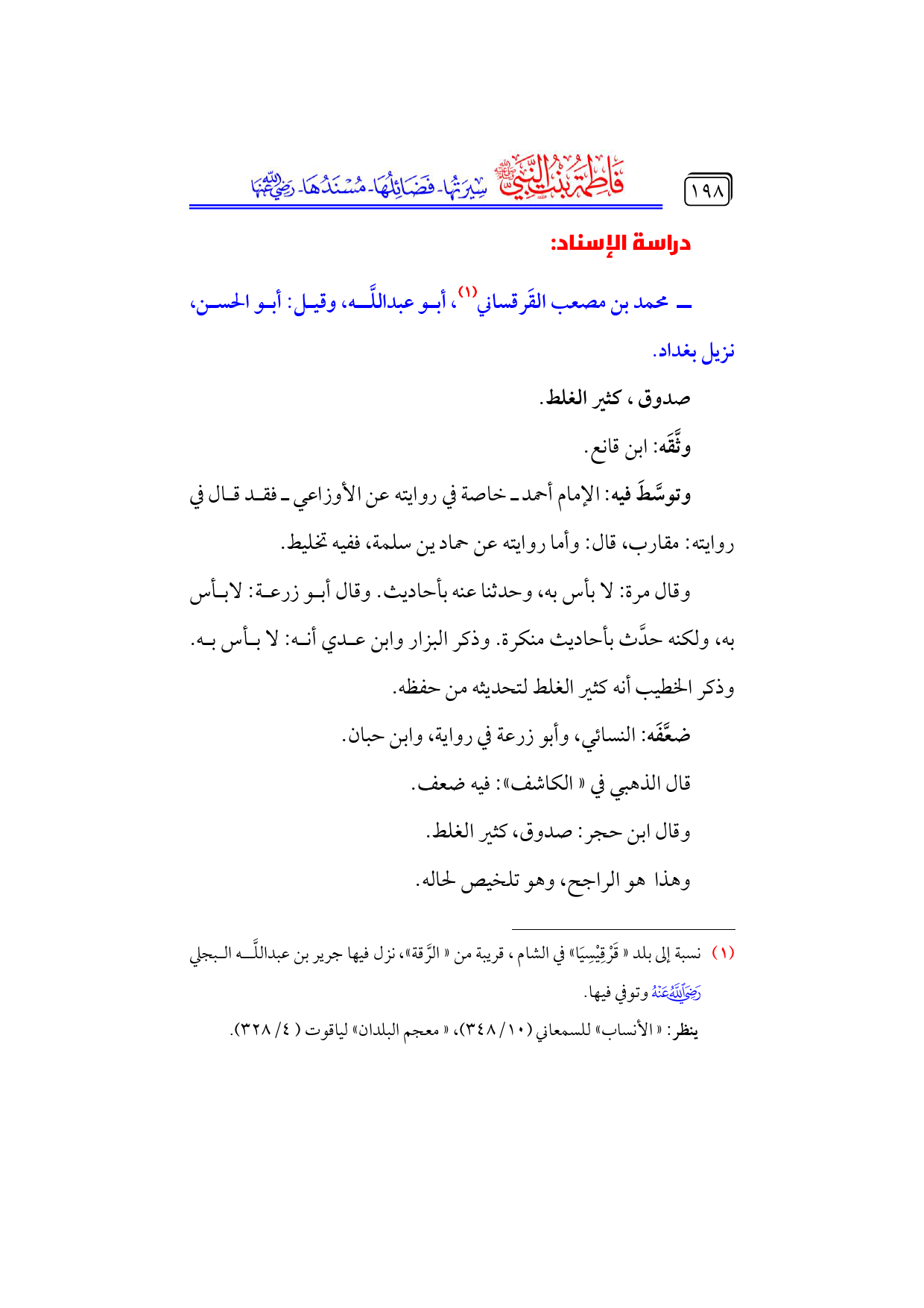 كتاب فاطمة بنت النبي - صلى الله عليه وسلم - سيرتها، فضائلها، مسندها - رضي الله عنها - (اسم الجزء: 4)