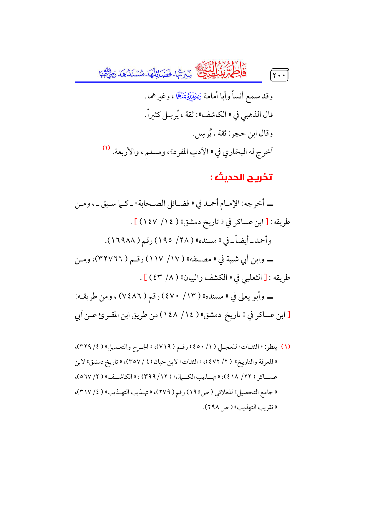 كتاب فاطمة بنت النبي - صلى الله عليه وسلم - سيرتها، فضائلها، مسندها - رضي الله عنها - (اسم الجزء: 4)