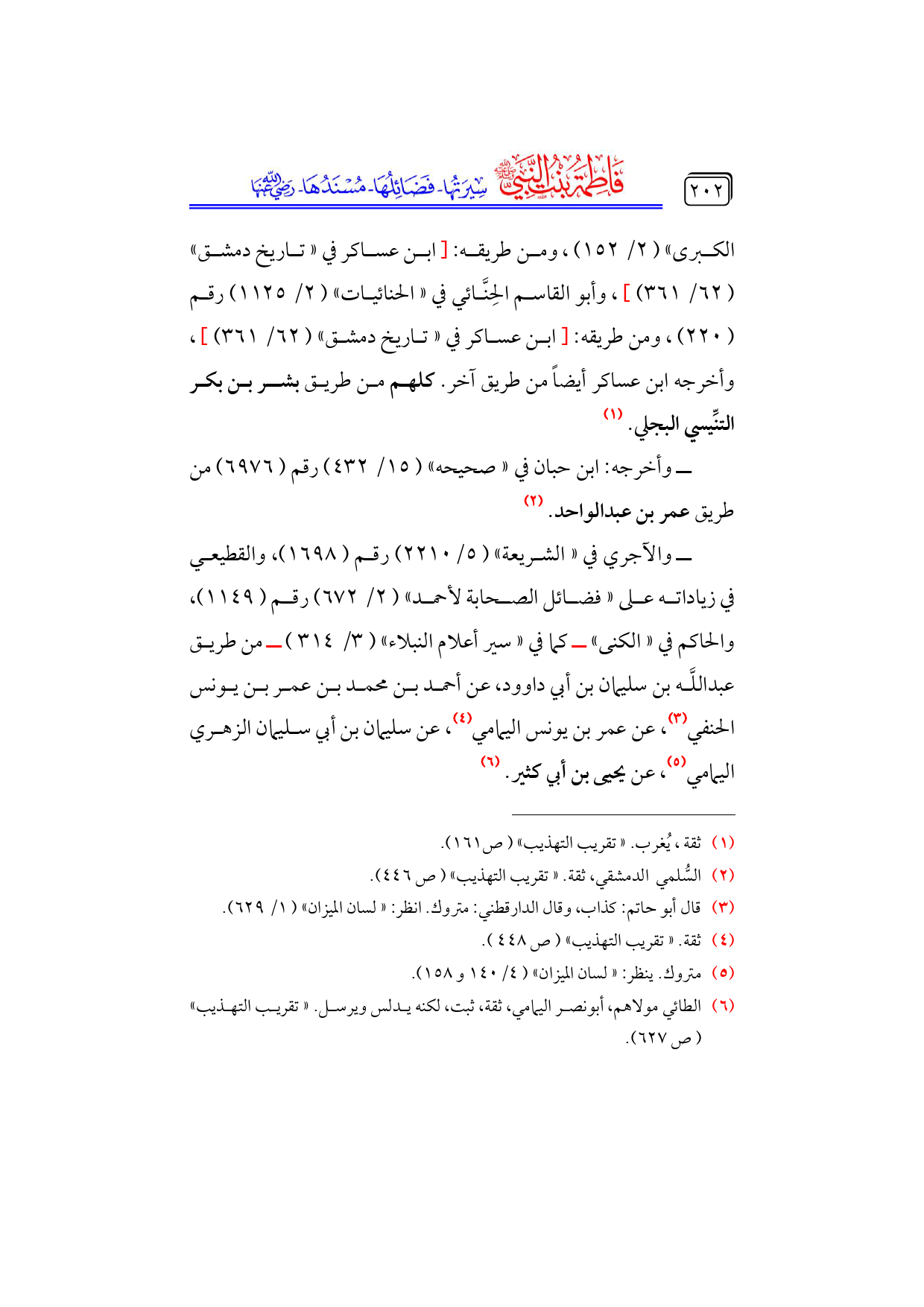 كتاب فاطمة بنت النبي - صلى الله عليه وسلم - سيرتها، فضائلها، مسندها - رضي الله عنها - (اسم الجزء: 4)