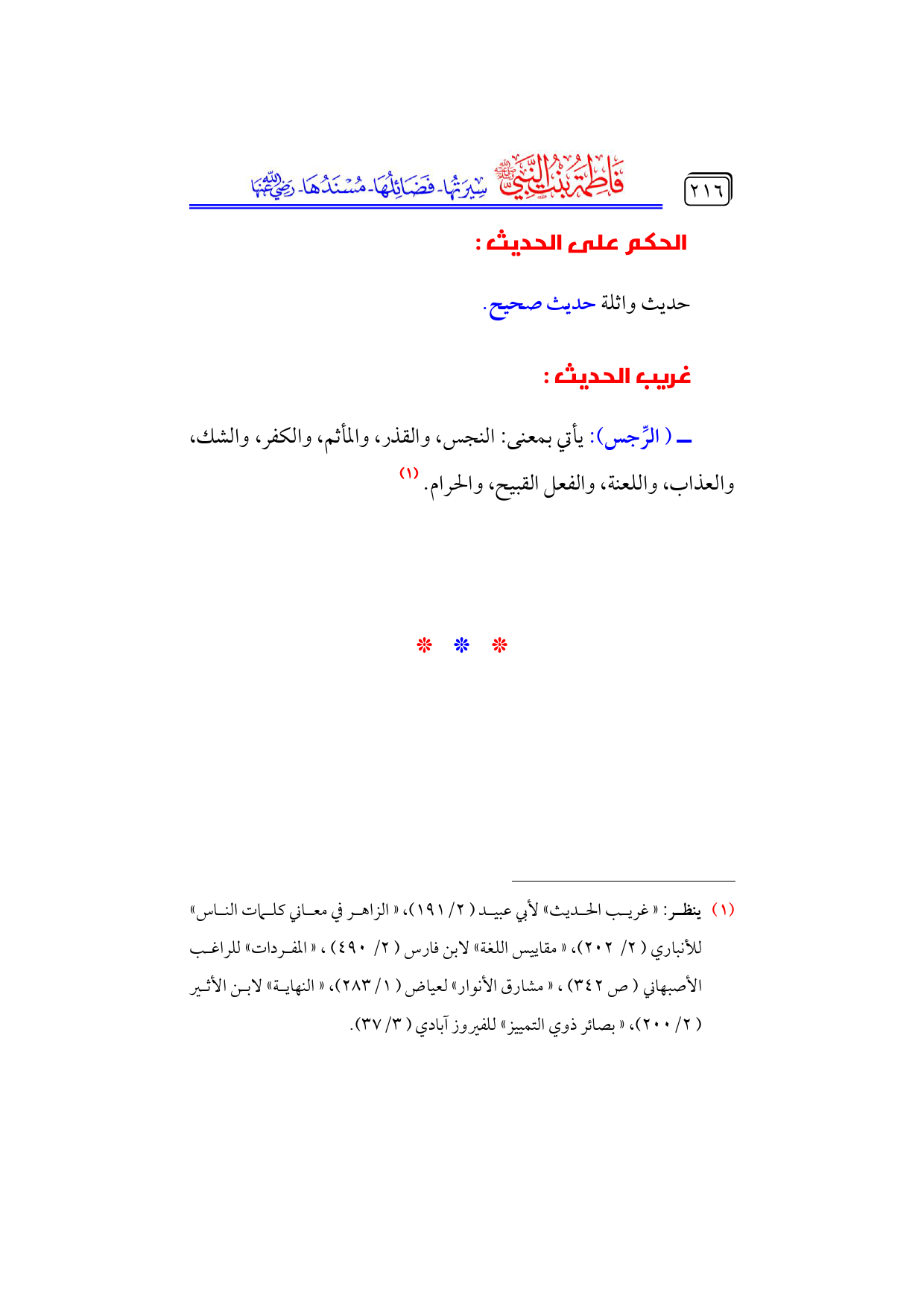 كتاب فاطمة بنت النبي - صلى الله عليه وسلم - سيرتها، فضائلها، مسندها - رضي الله عنها - (اسم الجزء: 4)