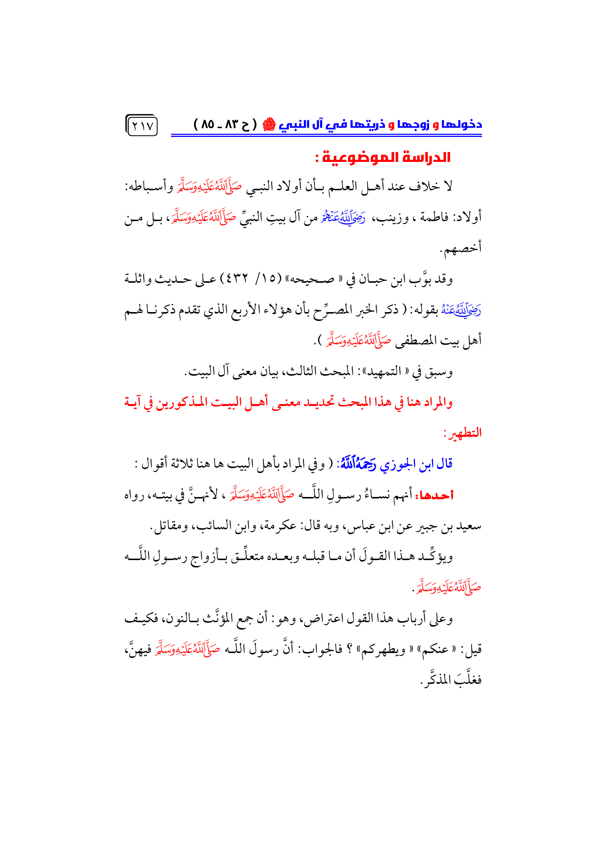 وسبق في «التمهيد»: المبحث الثالث، بيان معنى آل البيت.