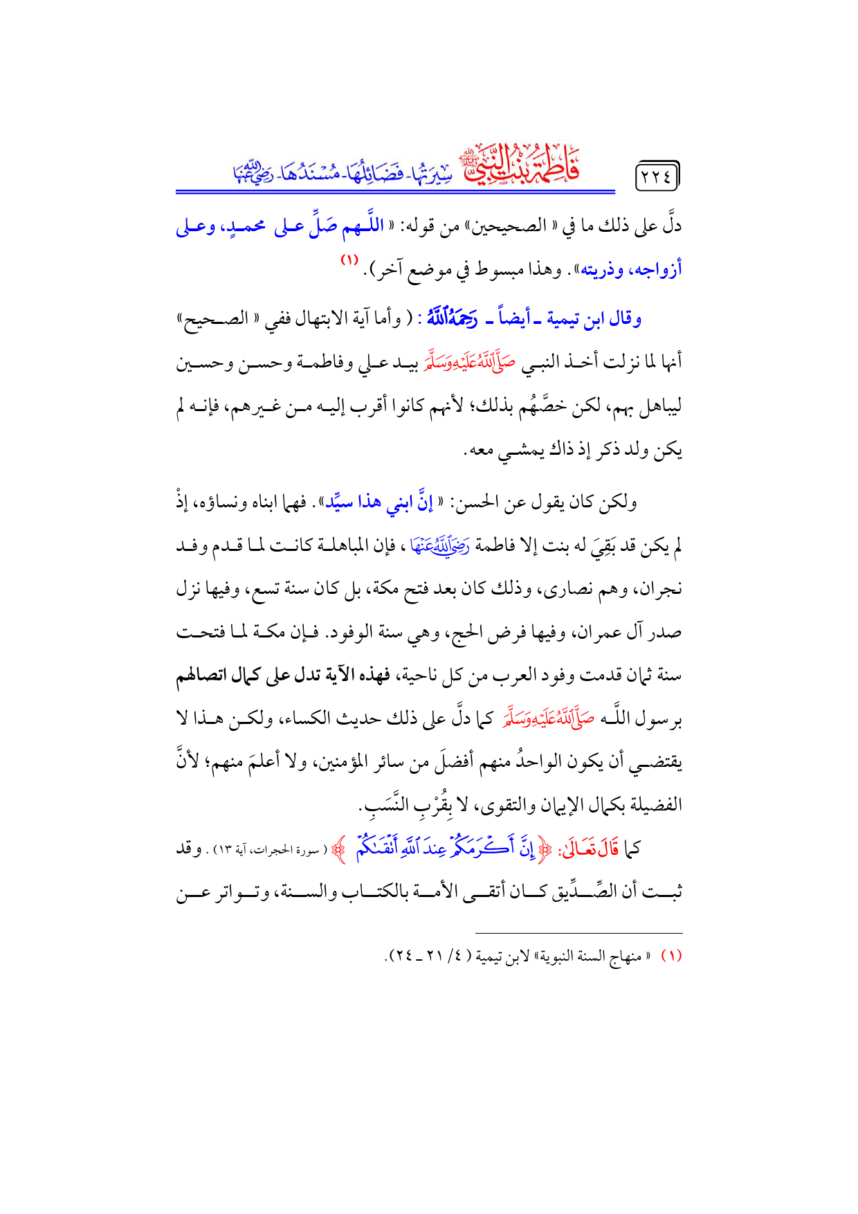 كتاب فاطمة بنت النبي - صلى الله عليه وسلم - سيرتها، فضائلها، مسندها - رضي الله عنها - (اسم الجزء: 4)