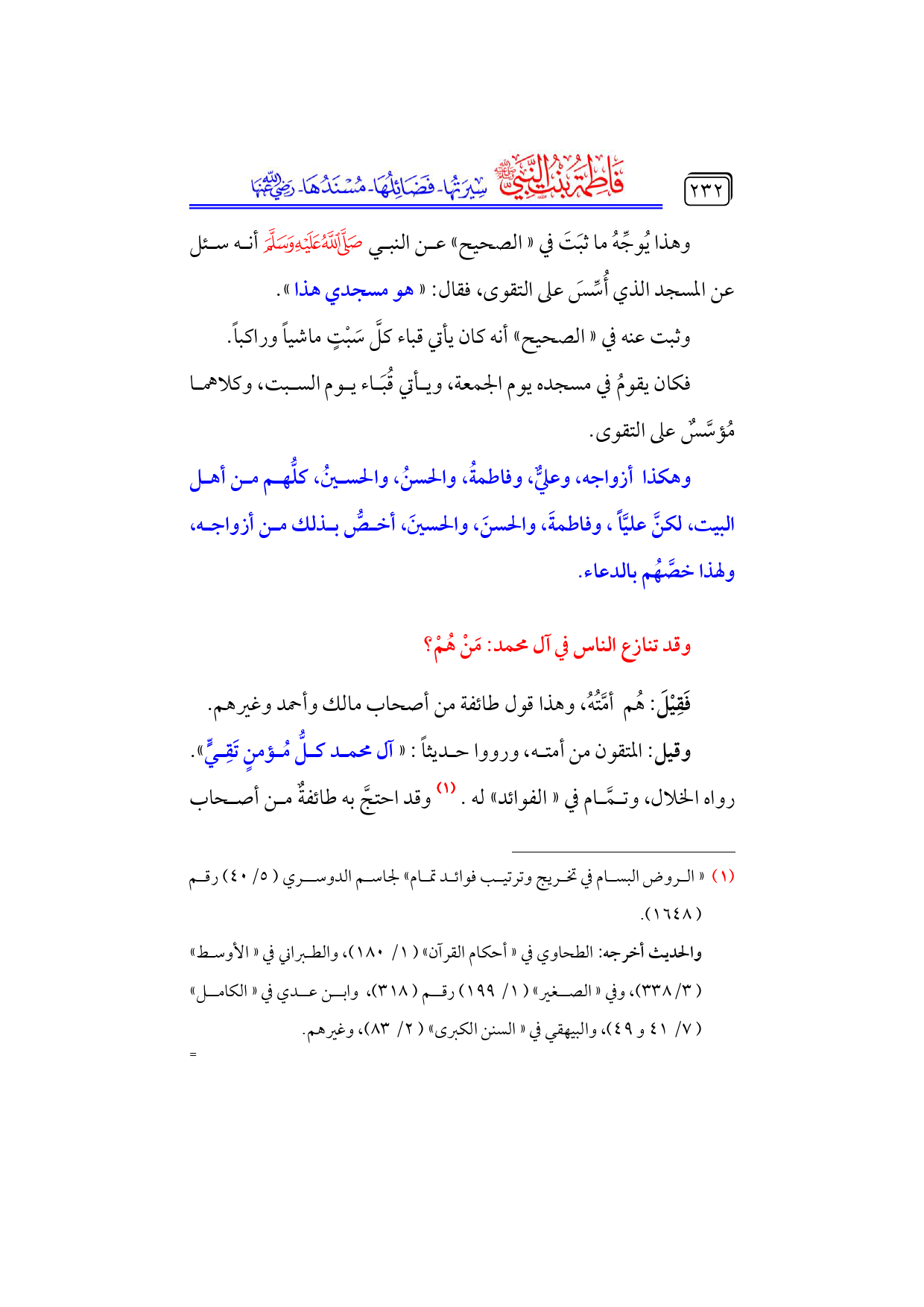 كتاب فاطمة بنت النبي - صلى الله عليه وسلم - سيرتها، فضائلها، مسندها - رضي الله عنها - (اسم الجزء: 4)