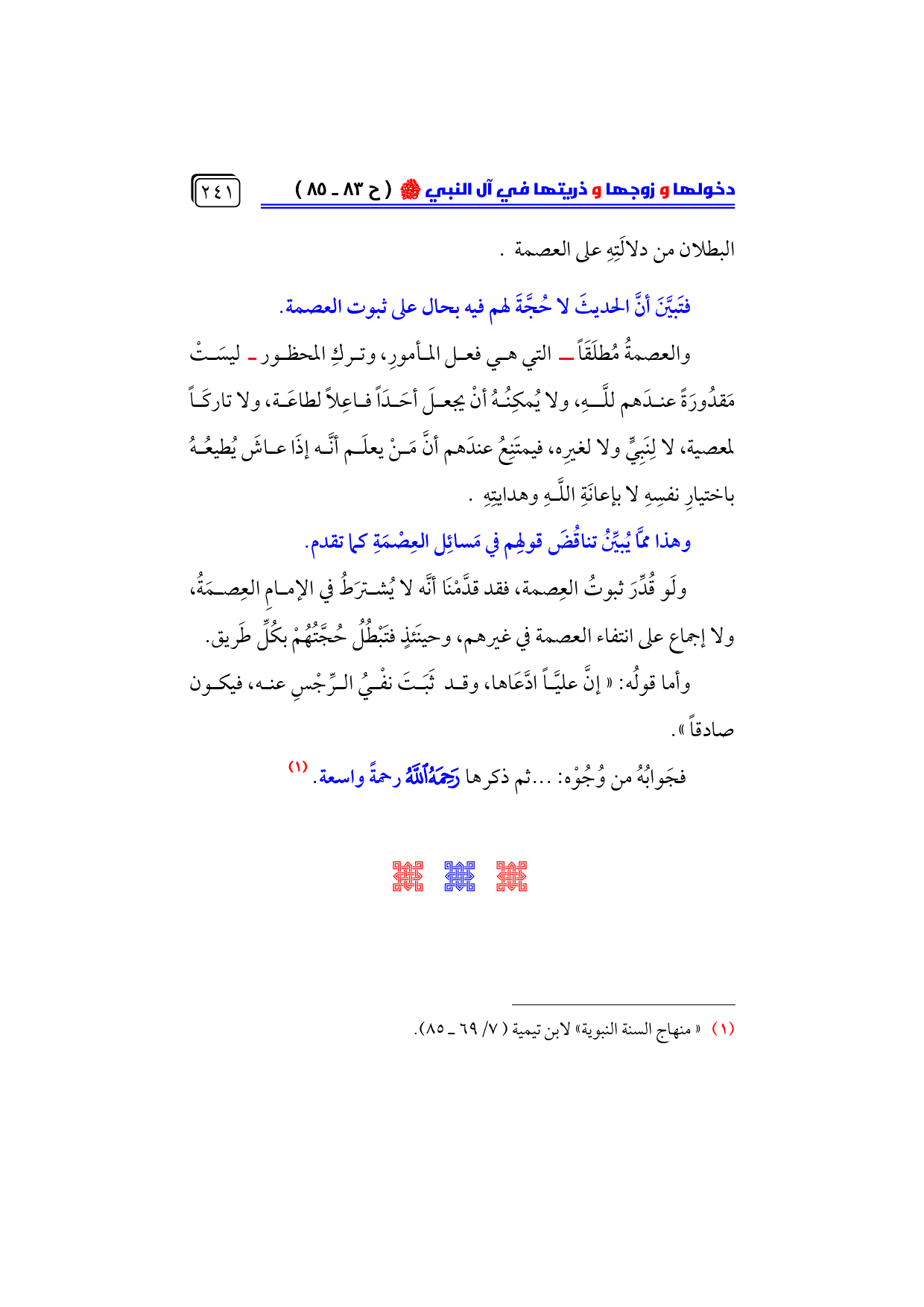 (¬١) «منهاج السنة النبوية» لابن تيمية (٧/ ٦٩ ـ ٨٥).