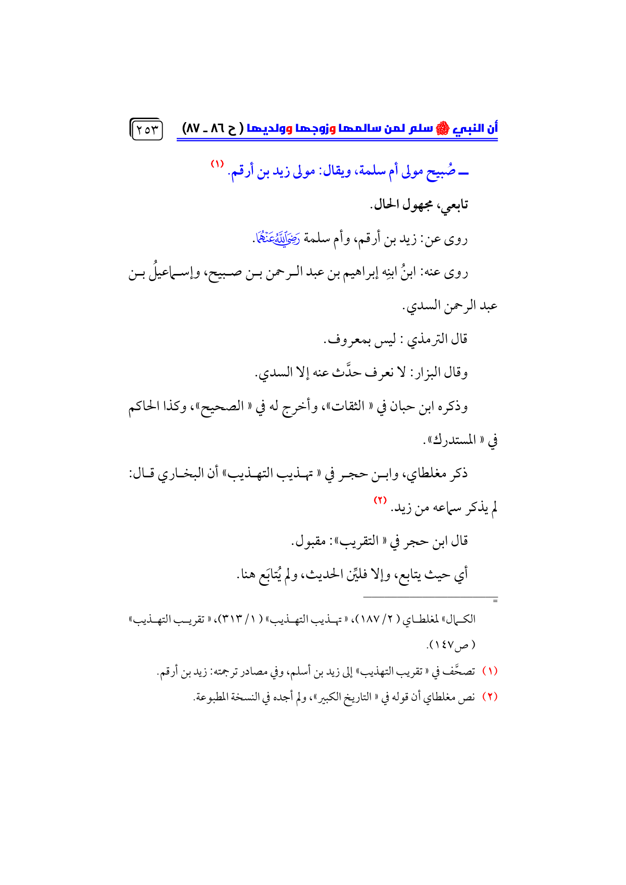 (¬١) تصحَّف في «تقريب التهذيب» إلى زيد بن أسلم، وفي مصادر ترجمته: زيد بن أرقم.