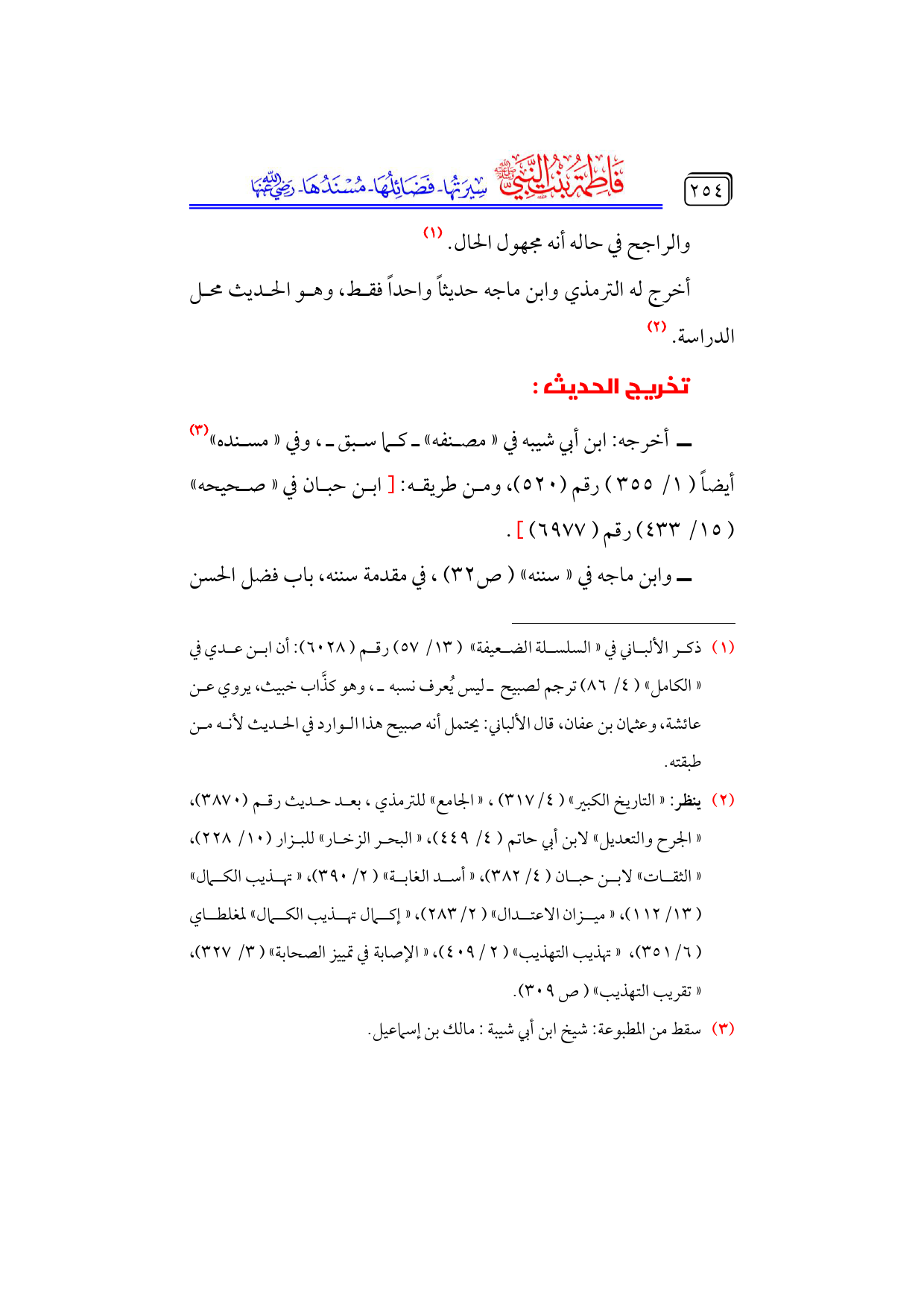 والراجح في حاله أنه مجهول الحال. (¬١)