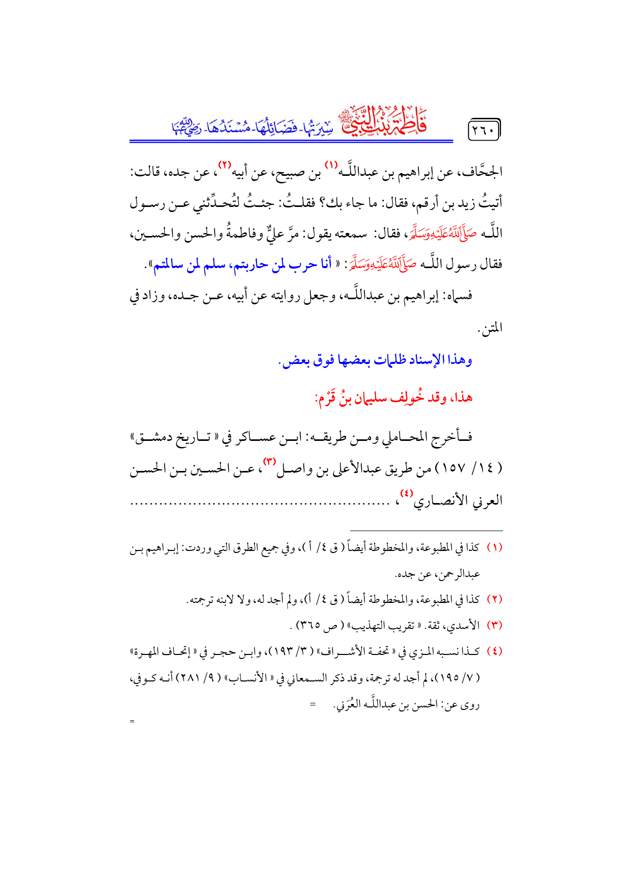 كتاب فاطمة بنت النبي - صلى الله عليه وسلم - سيرتها، فضائلها، مسندها - رضي الله عنها - (اسم الجزء: 4)