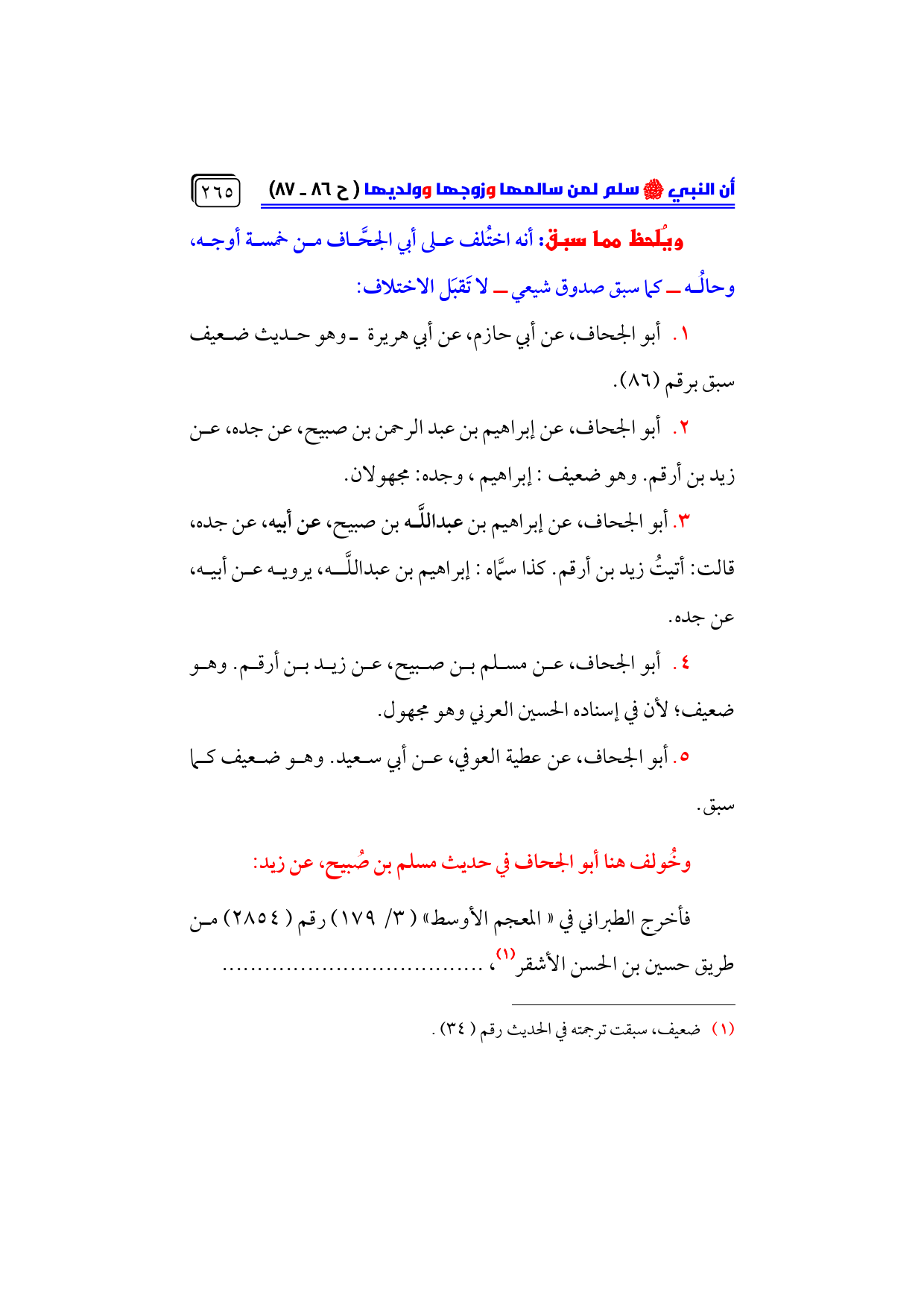 ٤. أبو الجحاف، عن مسلم بن صبيح، عن زيد بن أرقم. وهو ضعيف؛ لأن في إسناده الحسين العرني وهو مجهول.