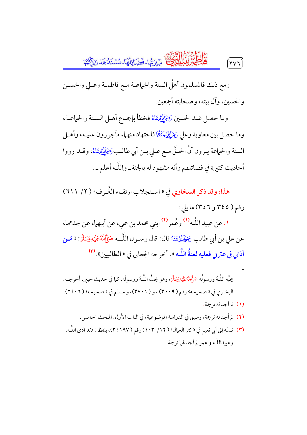 كتاب فاطمة بنت النبي - صلى الله عليه وسلم - سيرتها، فضائلها، مسندها - رضي الله عنها - (اسم الجزء: 4)