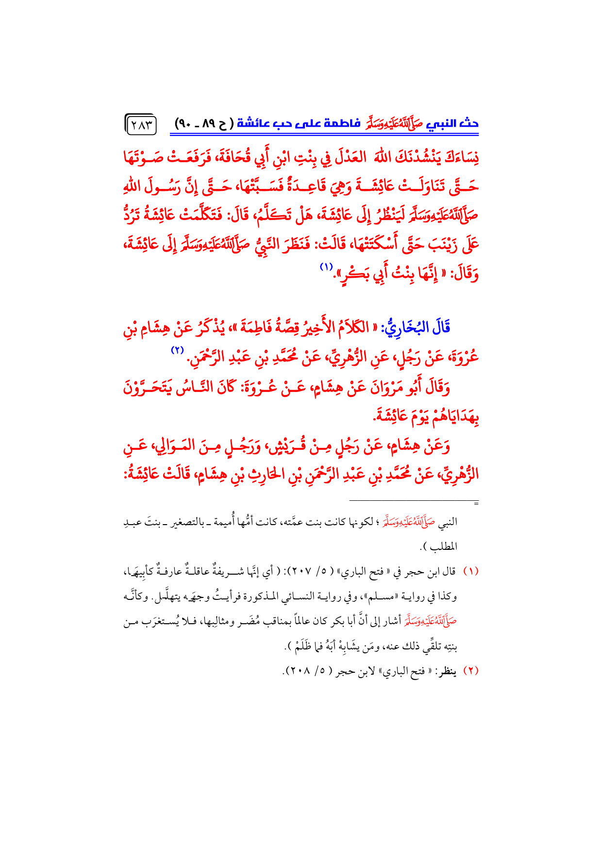 قَالَ البُخَارِيُّ: «الكَلامُ الأَخِيرُ قِصَّةُ فَاطِمَةَ»، يُذْكَرُ عَنْ هِشَامِ بْنِ عُرْوَةَ، عَنْ رَجُلٍ، عَنِ الزُّهْرِيِّ، عَنْ مُحَمَّدِ بْنِ عَبْدِ الرَّحْمَنِ. (¬٢)