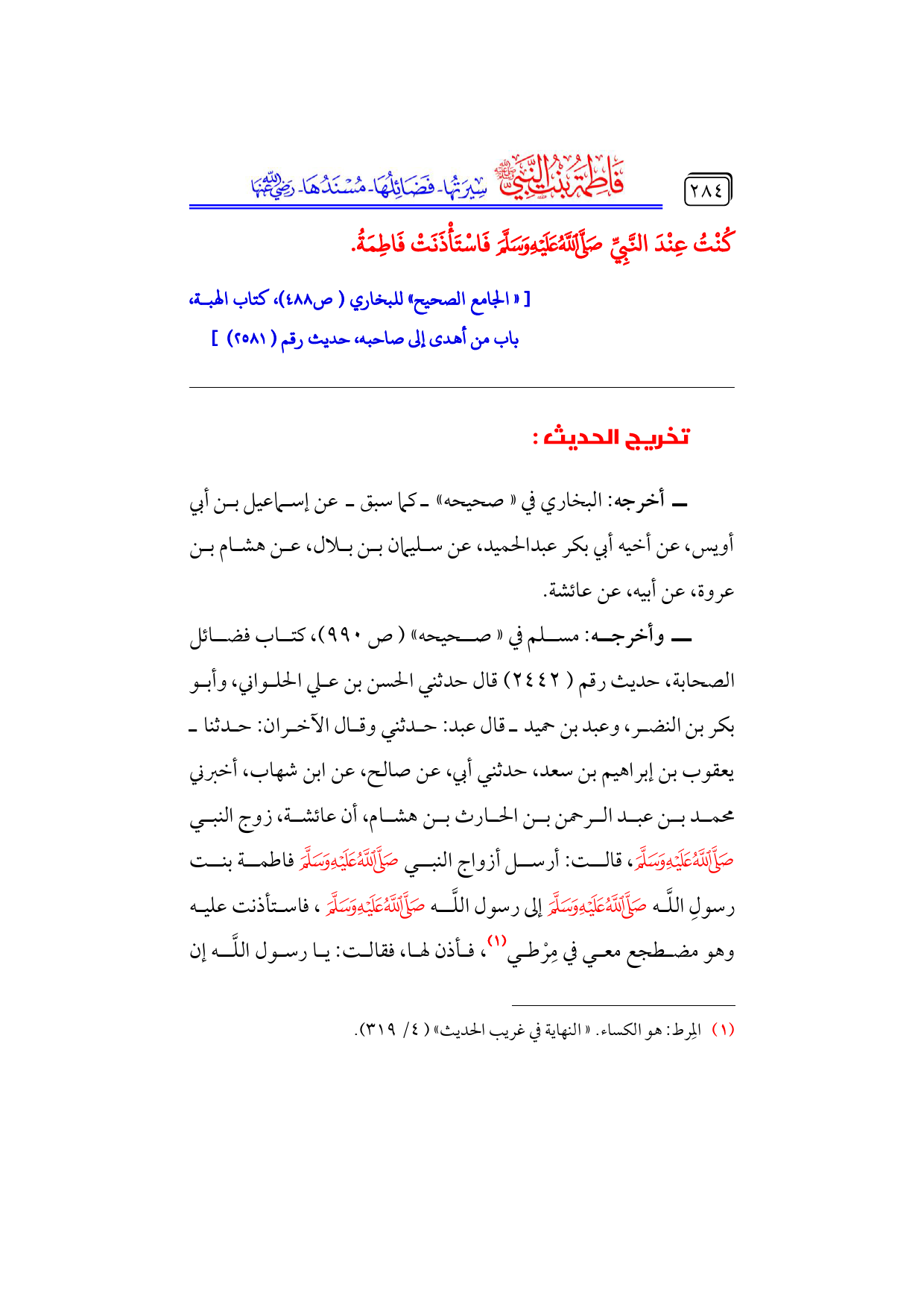 كتاب فاطمة بنت النبي - صلى الله عليه وسلم - سيرتها، فضائلها، مسندها - رضي الله عنها - (اسم الجزء: 4)