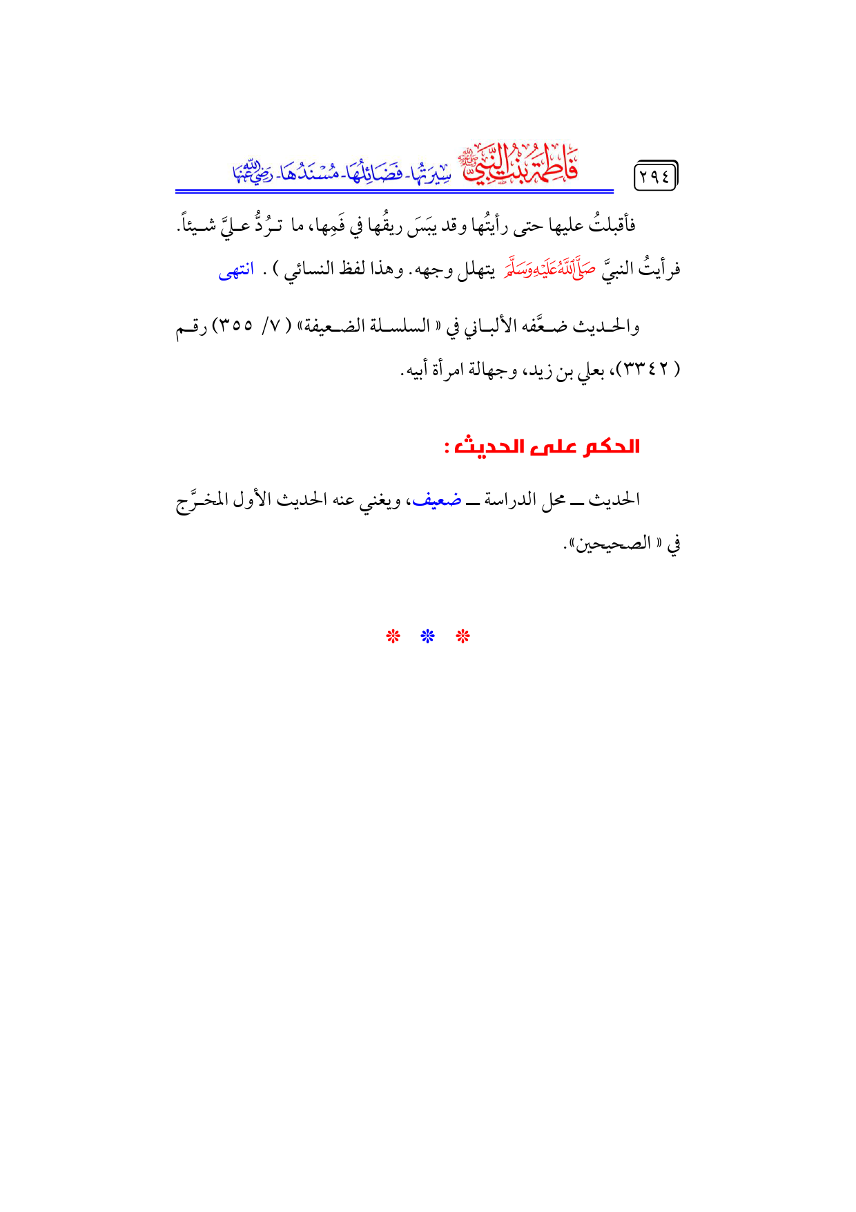 كتاب فاطمة بنت النبي - صلى الله عليه وسلم - سيرتها، فضائلها، مسندها - رضي الله عنها - (اسم الجزء: 4)