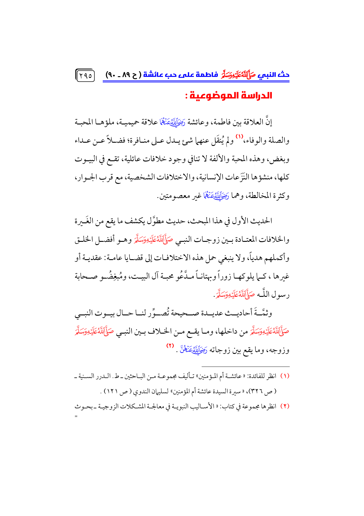 (¬٢) انظرها مجموعة في كتاب: «الأساليب النبوية في معالجة المشكلات الزوجية ـ بحوث تحليلية للحياة الزوجية في بيت النبوة ـ» د. عبدالسميع الأنيس.