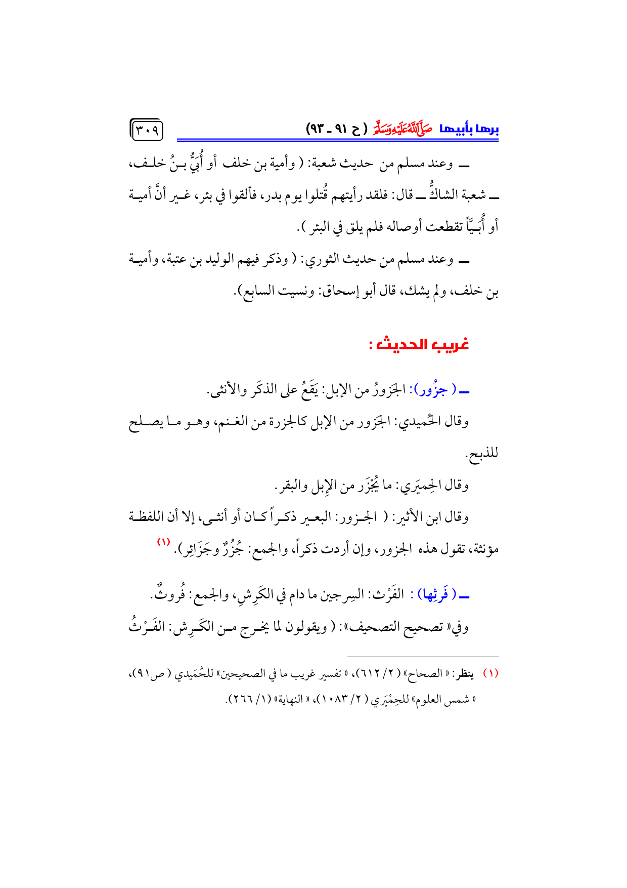 (¬١). ينظر: «الصحاح» (٢/ ٦١٢)، «تفسير غريب ما في الصحيحين» للحُمَيدي (ص ٩١)، ... «شمس العلوم» للحِمْيَري (٢/ ١٠٨٣)، «النهاية» (١/ ٢٦٦).