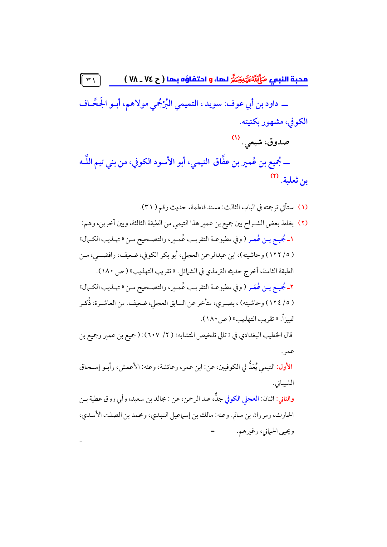 (¬٢) يغلط بعض الشراح بين جميع بن عمير هذا التيمي من الطبقة الثالثة، وبين آخرين، وهم: