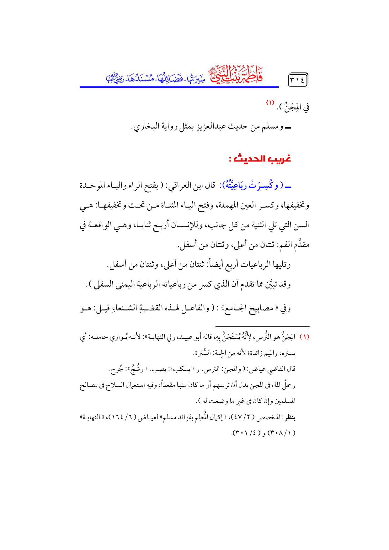 كتاب فاطمة بنت النبي - صلى الله عليه وسلم - سيرتها، فضائلها، مسندها - رضي الله عنها - (اسم الجزء: 4)