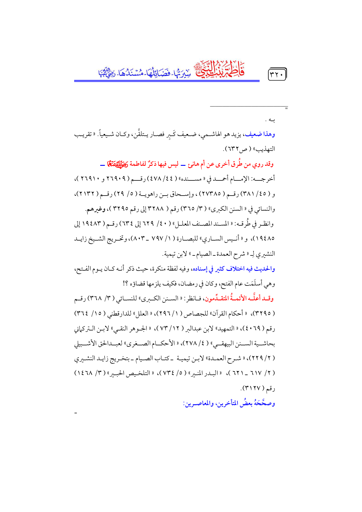 كتاب فاطمة بنت النبي - صلى الله عليه وسلم - سيرتها، فضائلها، مسندها - رضي الله عنها - (اسم الجزء: 4)