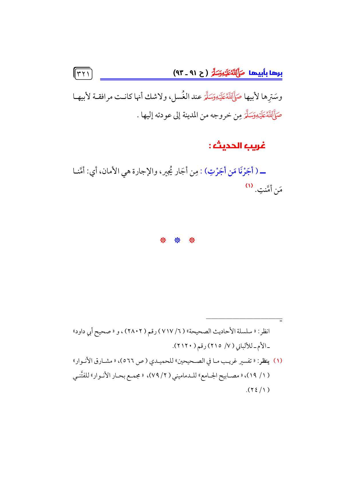 (¬١) ينظر: «تفسير غريب ما في الصحيحين» للحميدي (ص ٥٦٦)، «مشارق الأنوار» ... (١/ ١٩)، «مصابيح الجامع» للدماميني (٢/ ٧٩)، «مجمع بحار الأنوار» للفتَّني ... (١/ ٢٤).
