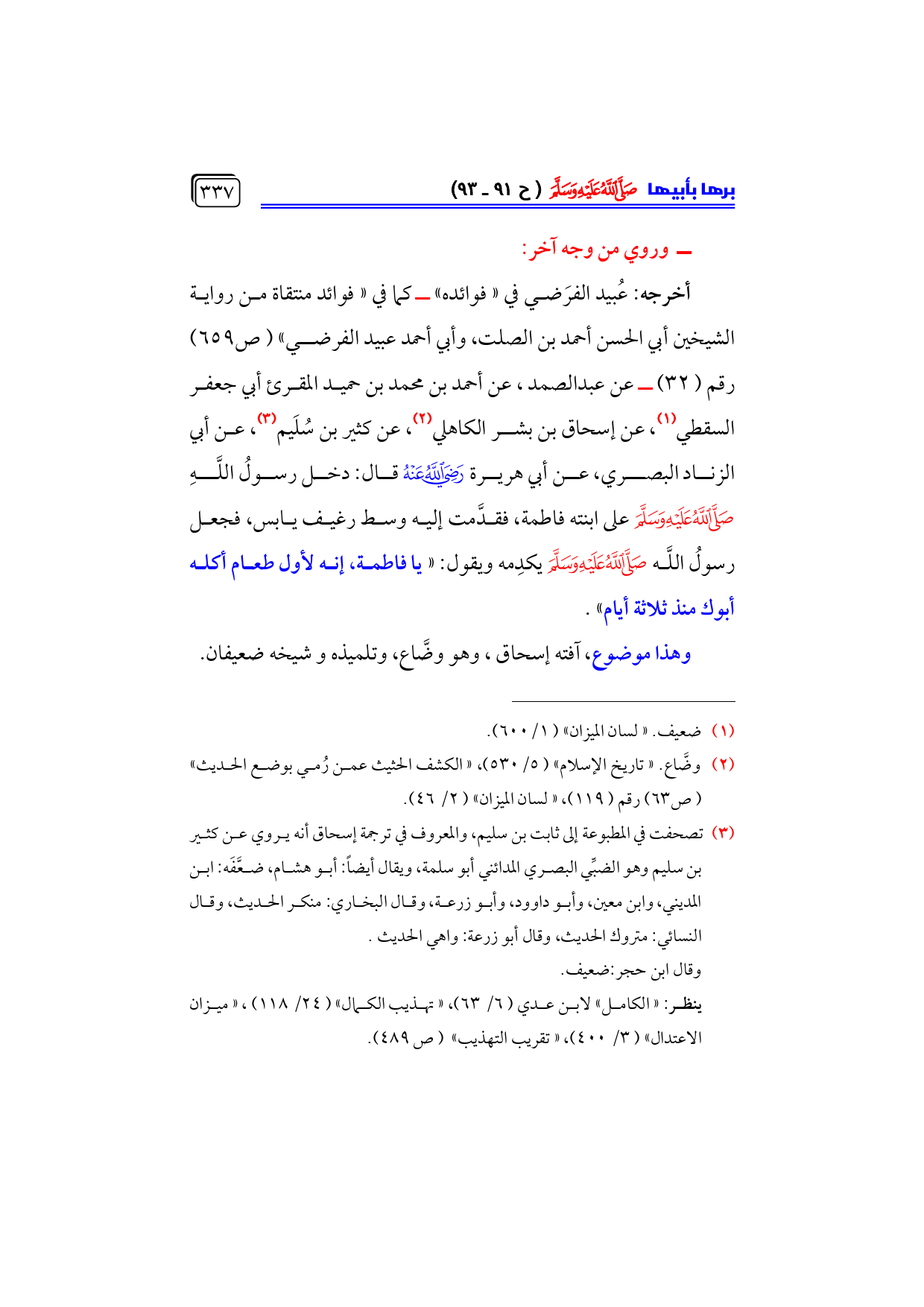 كتاب فاطمة بنت النبي - صلى الله عليه وسلم - سيرتها، فضائلها، مسندها - رضي الله عنها - (اسم الجزء: 4)