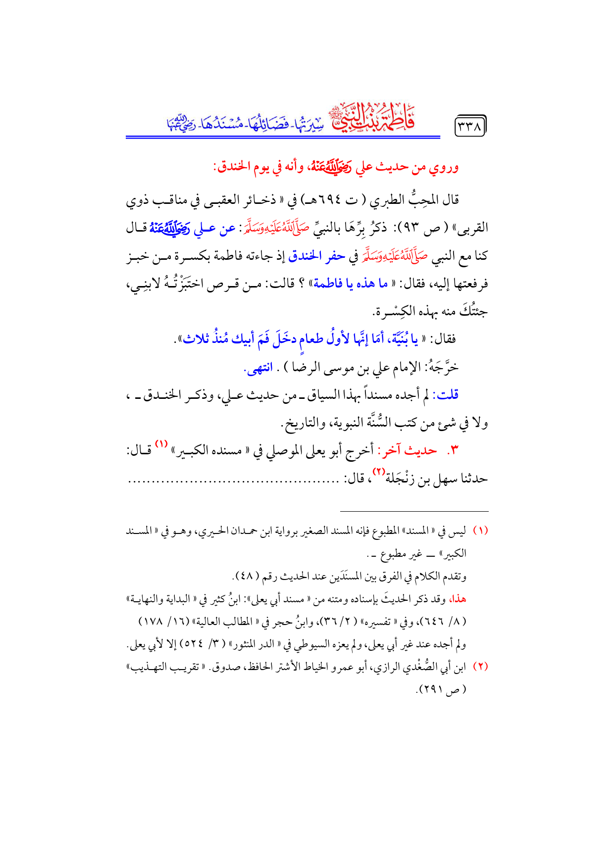كتاب فاطمة بنت النبي - صلى الله عليه وسلم - سيرتها، فضائلها، مسندها - رضي الله عنها - (اسم الجزء: 4)