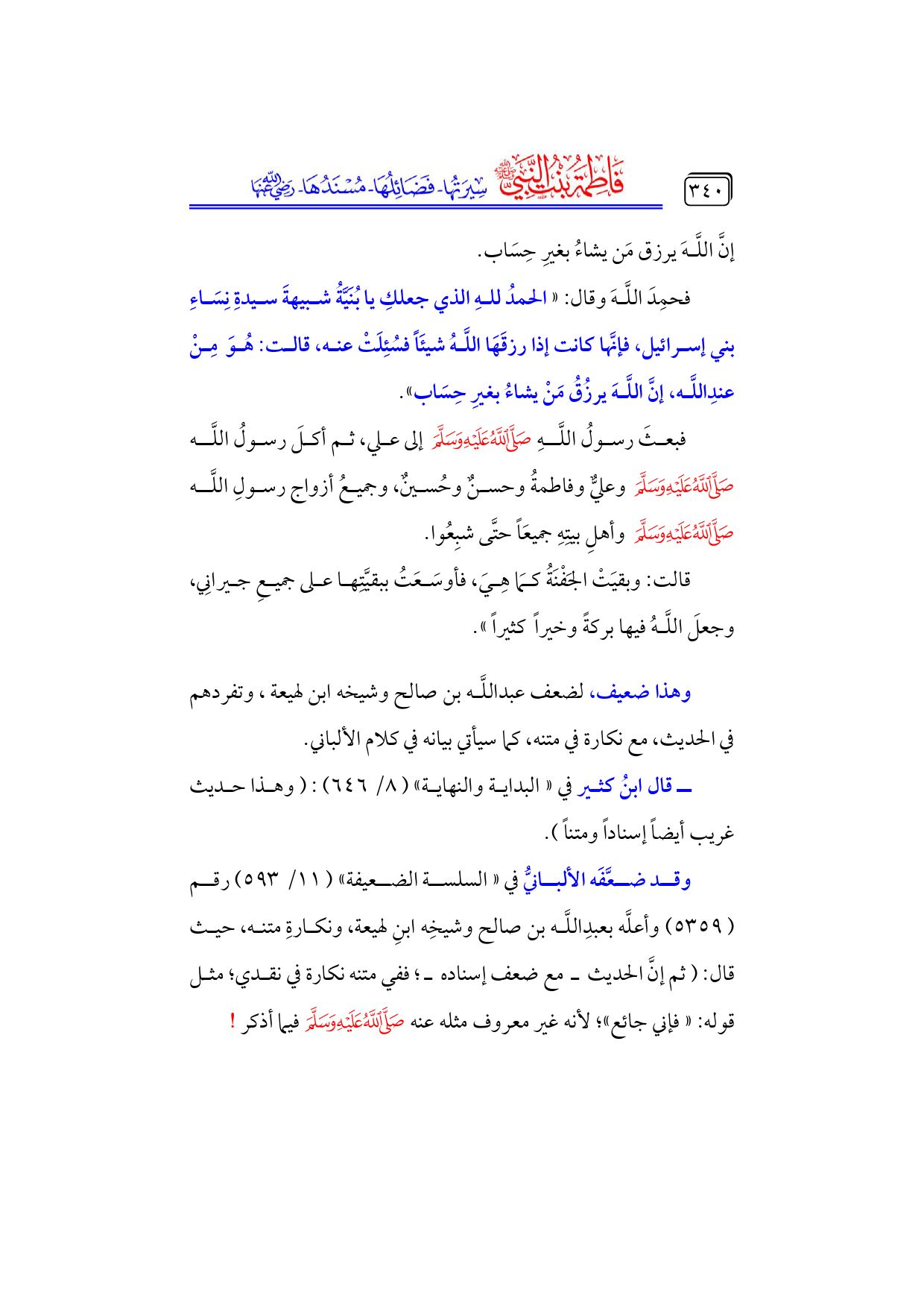 كتاب فاطمة بنت النبي - صلى الله عليه وسلم - سيرتها، فضائلها، مسندها - رضي الله عنها - (اسم الجزء: 4)