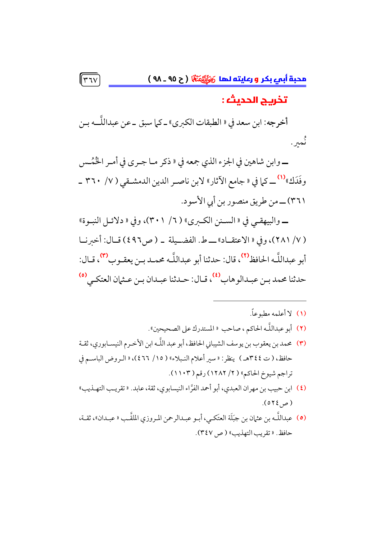 ــ والبيهقي في «السنن الكبرى» (٦/ ٣٠١)، وفي «دلائل النبوة» ... (٧/ ٢٨١)، وفي «الاعتقاد» ـ ط. الفضيلة ـ (ص ٤٩٦) قال: أخبرنا ... أبو عبداللَّه الحافظ (¬٢)، قال: حدثنا أبو عبداللَّه محمد بن يعقوب (¬٣)، قال: حدثنا محمد بن عبدالوهاب (¬٤)، قال: حدثنا عبدان بن عثمان العتكي (¬٥) ... ـ