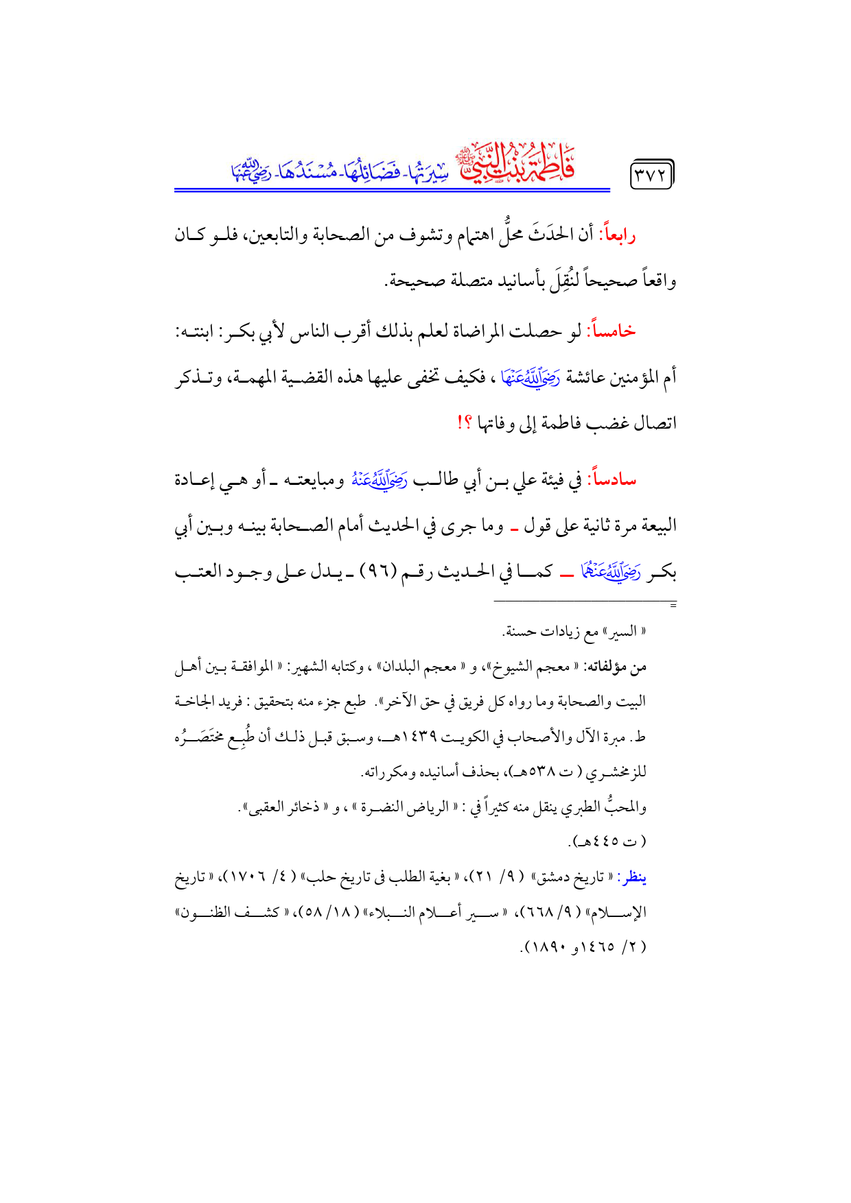 كتاب فاطمة بنت النبي - صلى الله عليه وسلم - سيرتها، فضائلها، مسندها - رضي الله عنها - (اسم الجزء: 4)