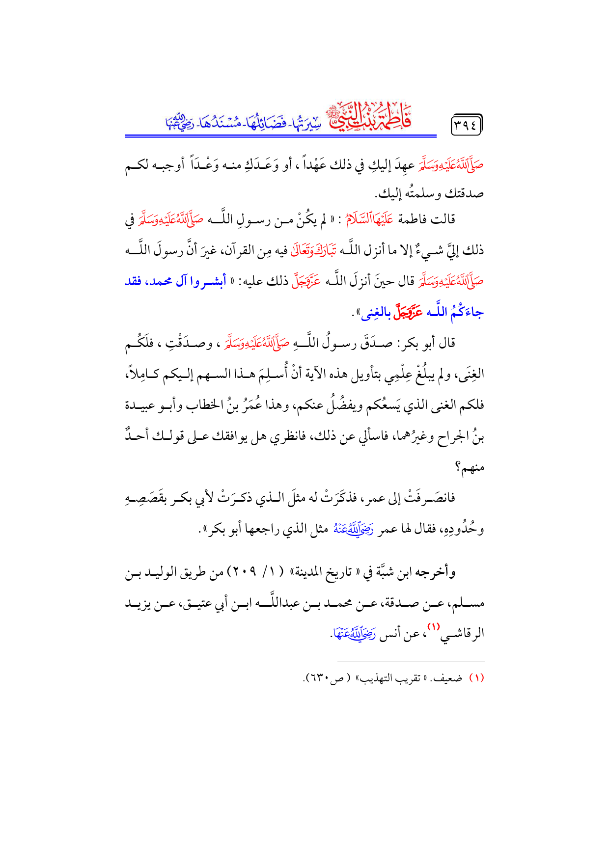 كتاب فاطمة بنت النبي - صلى الله عليه وسلم - سيرتها، فضائلها، مسندها - رضي الله عنها - (اسم الجزء: 4)