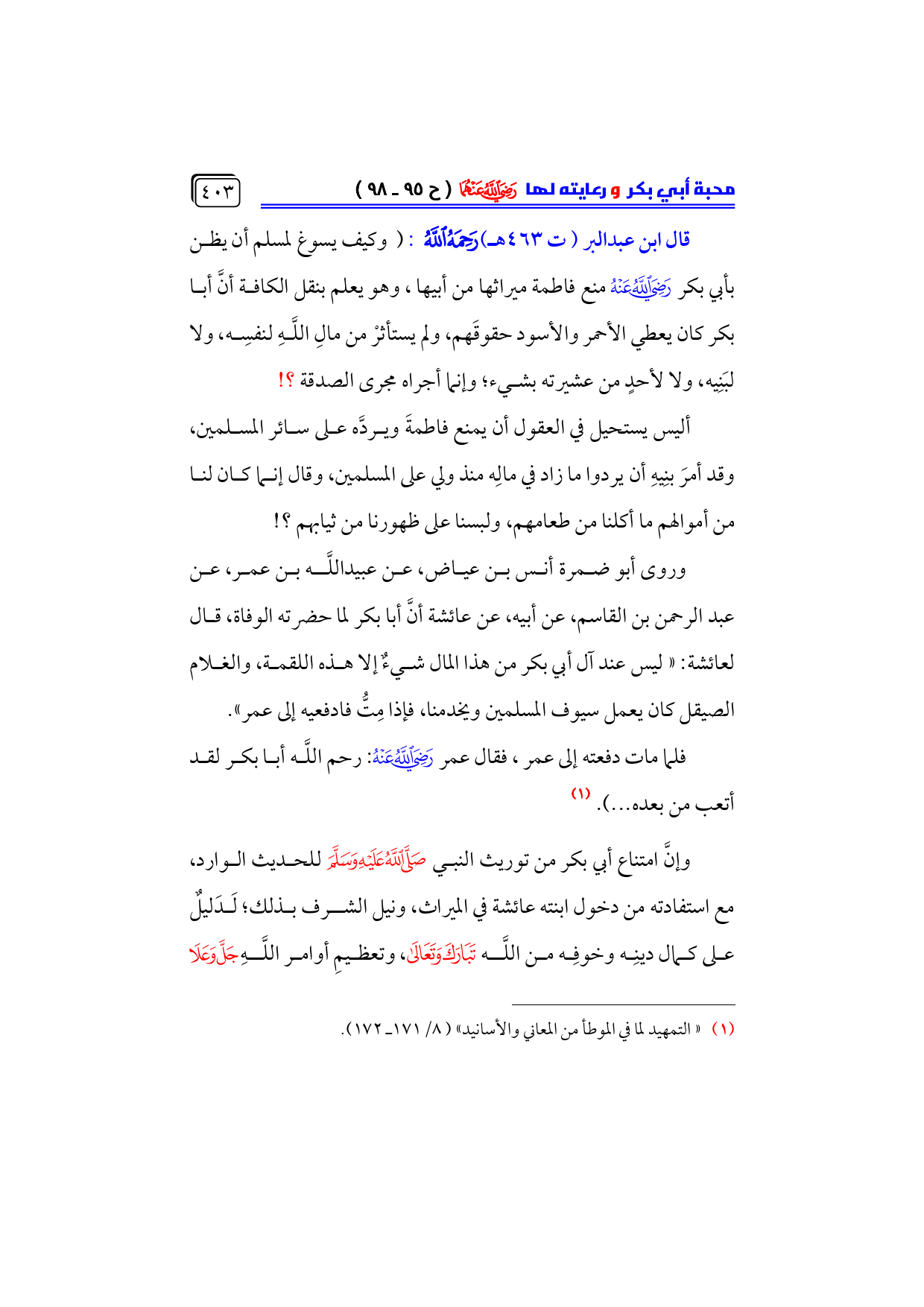 (¬١) «التمهيد لما في الموطأ من المعاني والأسانيد» (٨/ ١٧١ ـ ١٧٢).