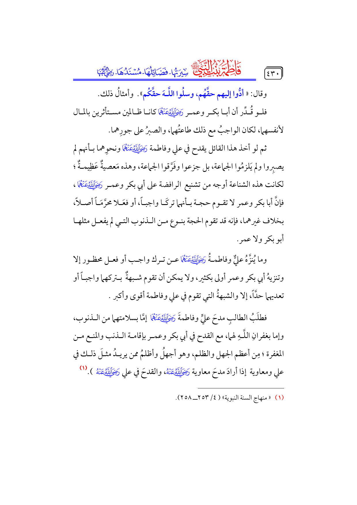 (¬١) «منهاج السنة النبوية» (٤/ ٢٥٣ ــ ٢٥٨).