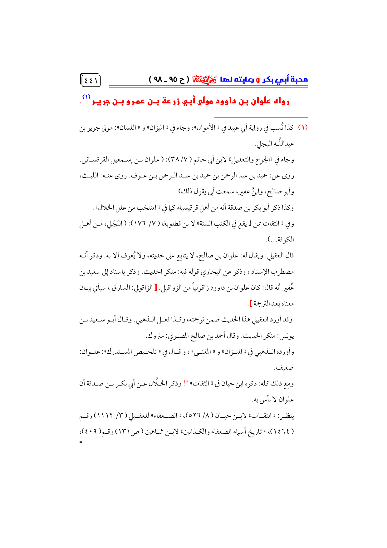 رواه علوان بن داوود مولى أبي زرعة بن عمرو بن جرير (¬١).
