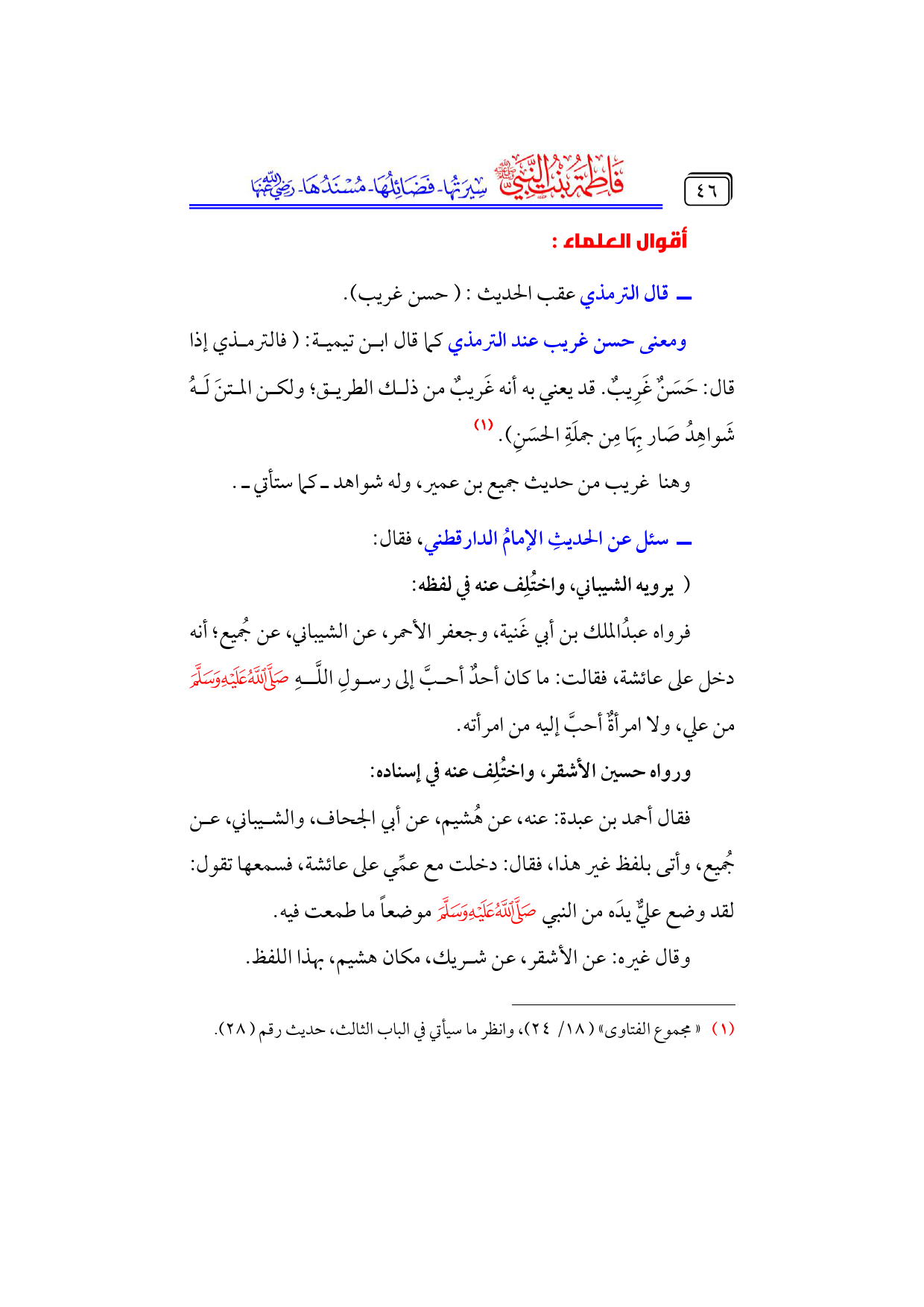 كتاب فاطمة بنت النبي - صلى الله عليه وسلم - سيرتها، فضائلها، مسندها - رضي الله عنها - (اسم الجزء: 4)